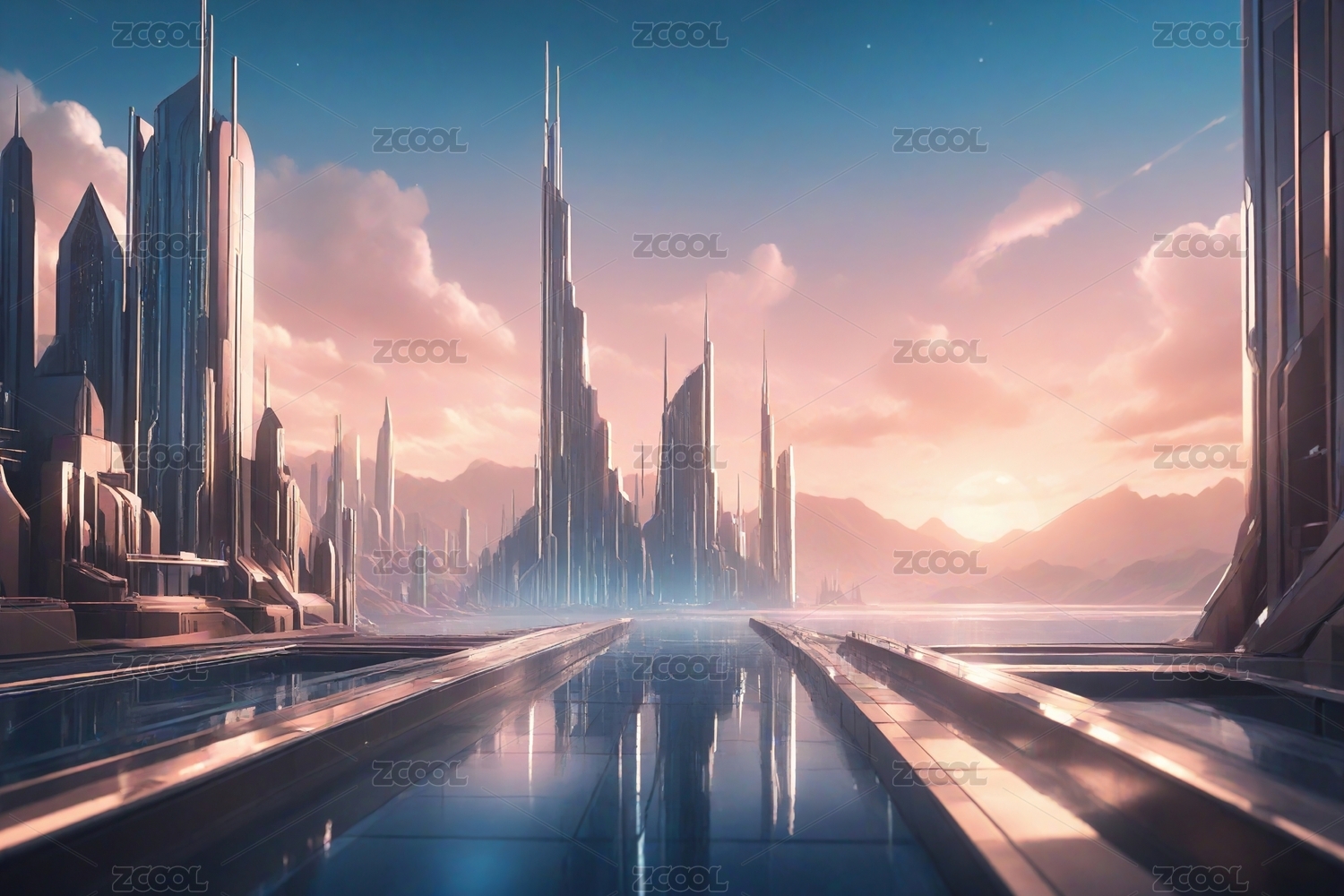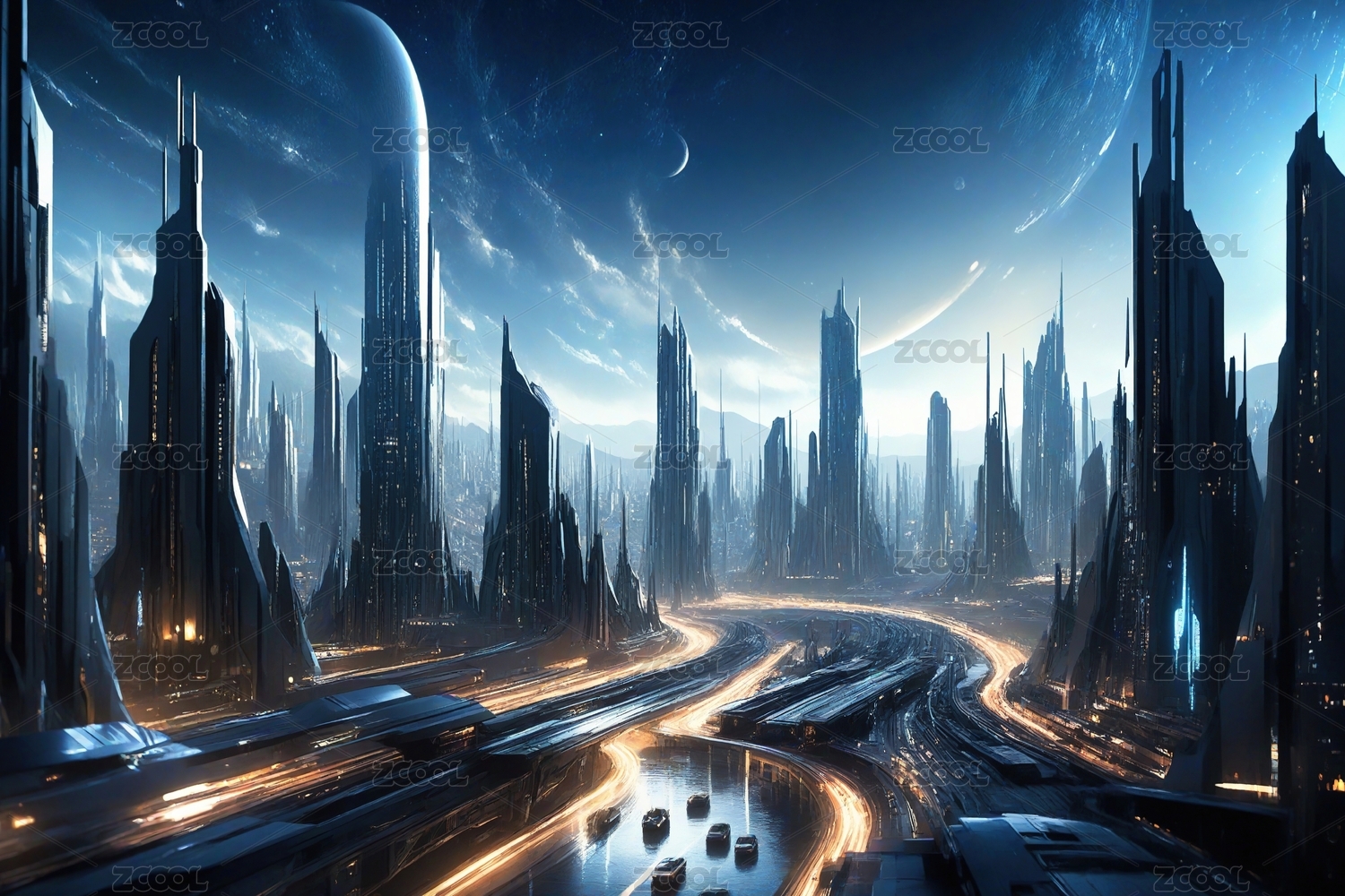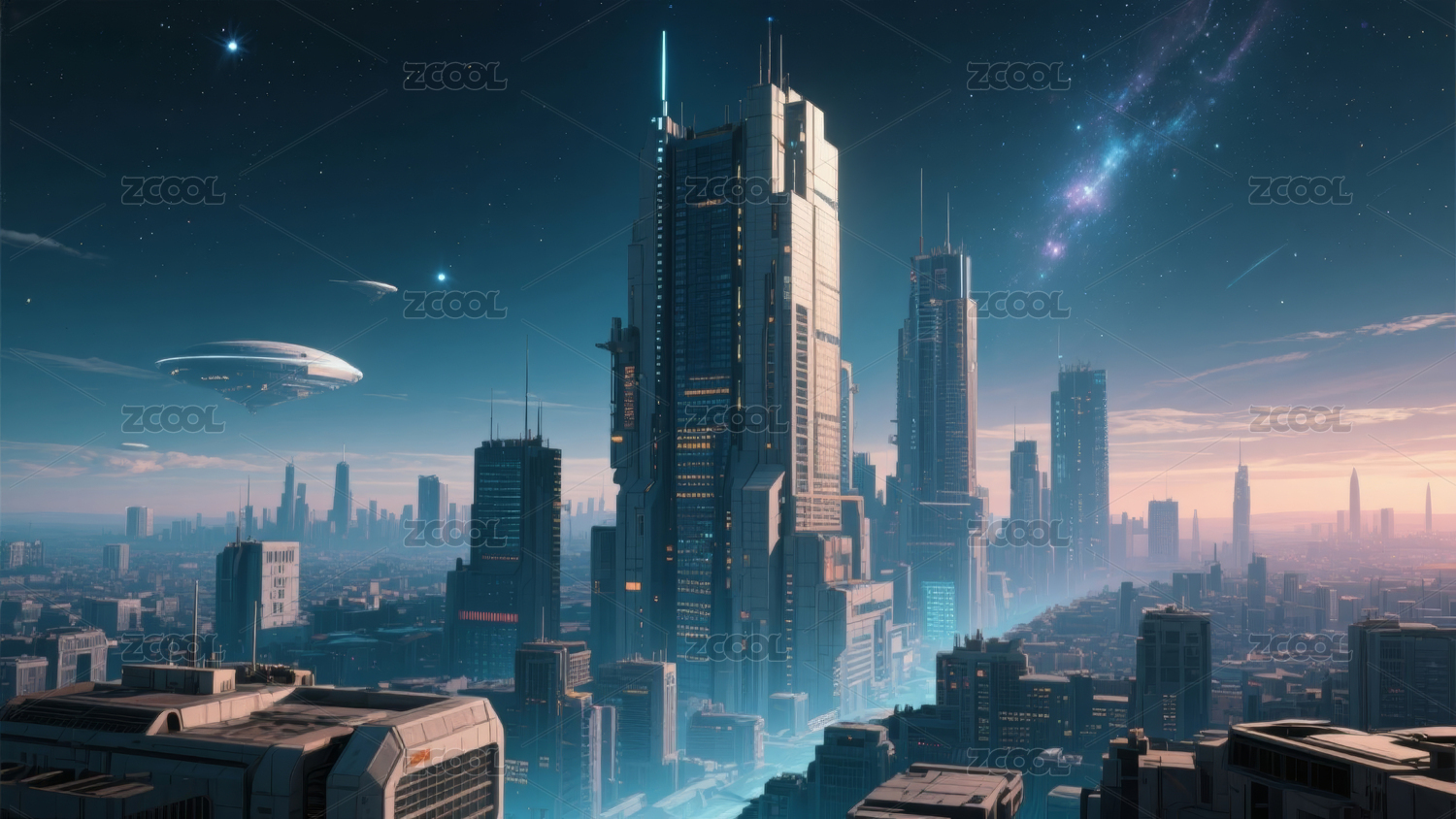 科幻,城市,天际线,摩天大楼,未来主义,反射,镜面效果,星星,流星,灯光
