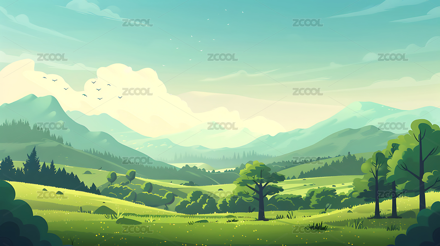 矢量风格抽象草原风景