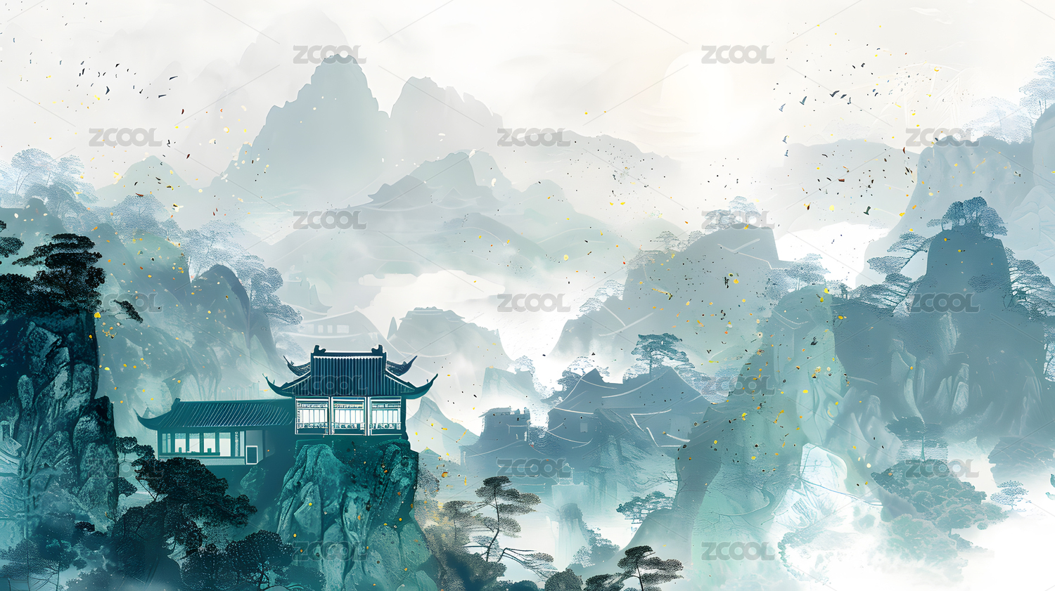 山间古寺主题