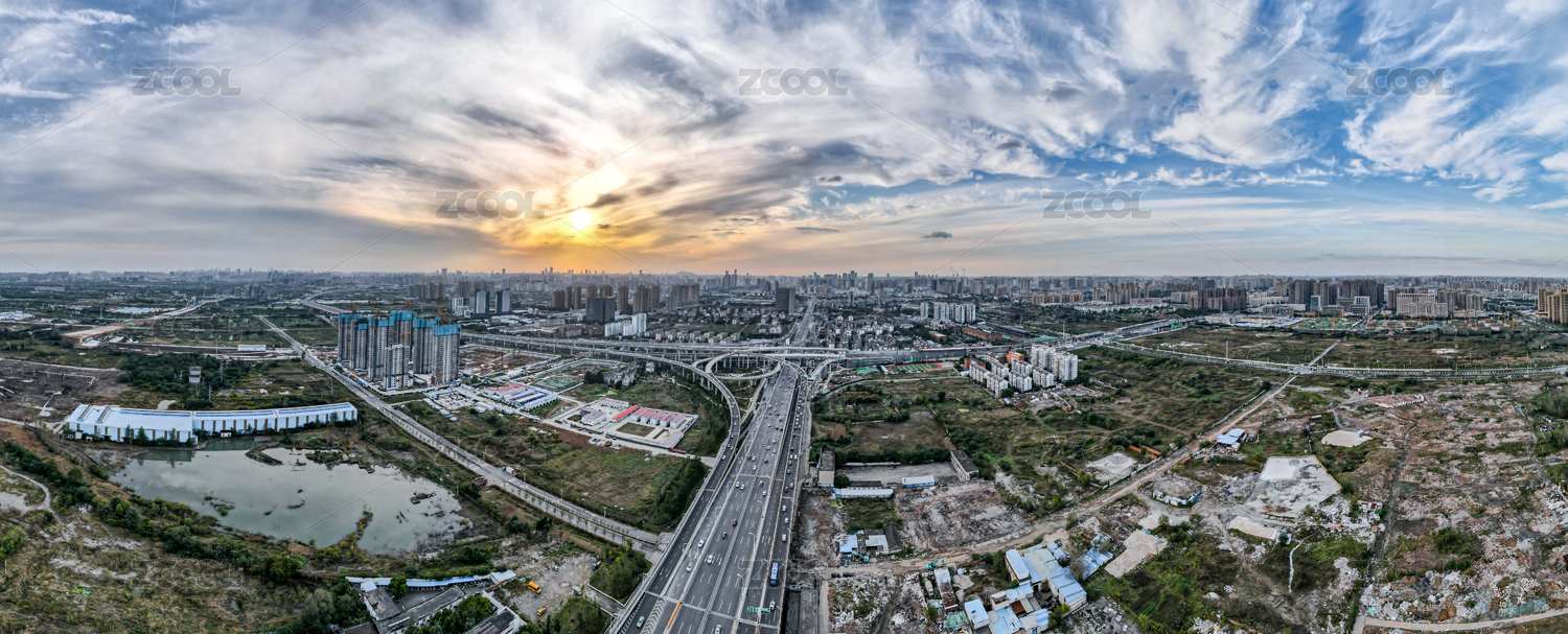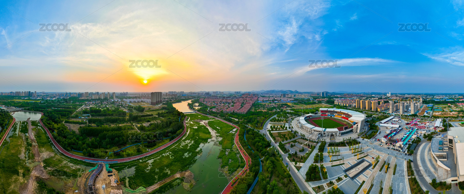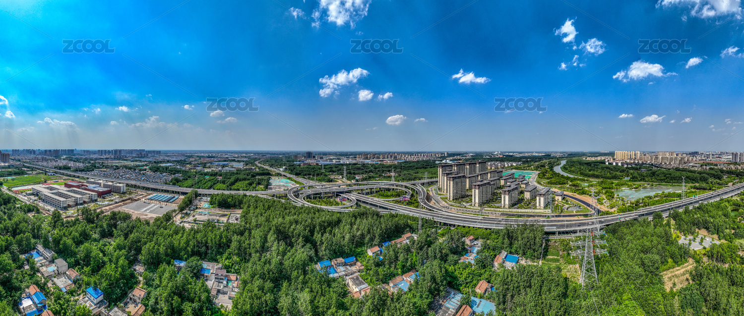 中国浙江省宁波市鄞州区院士公园和南高教园区全景
