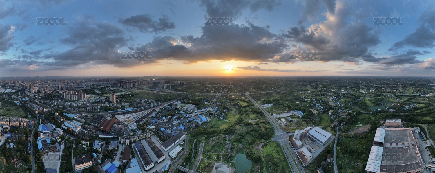 航拍中国四川隆昌市蓝天白云下的城市风光