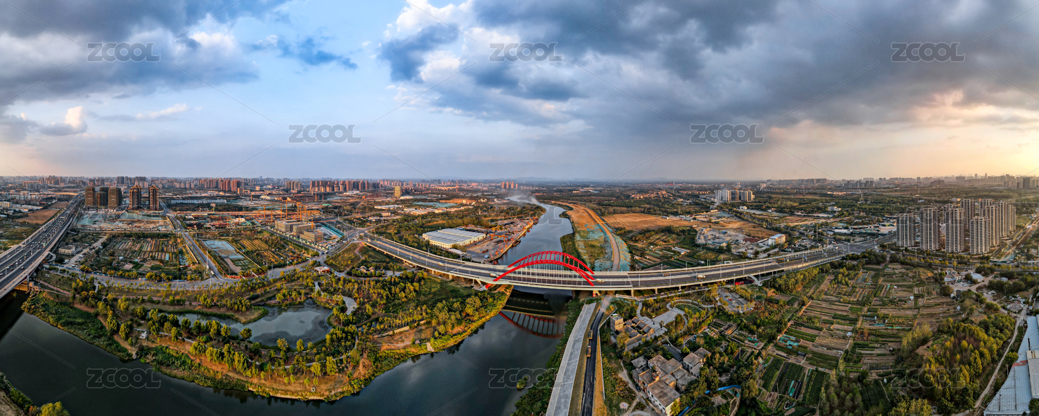 航拍郑州高新区天健湖公园城市湿地湖泊水系