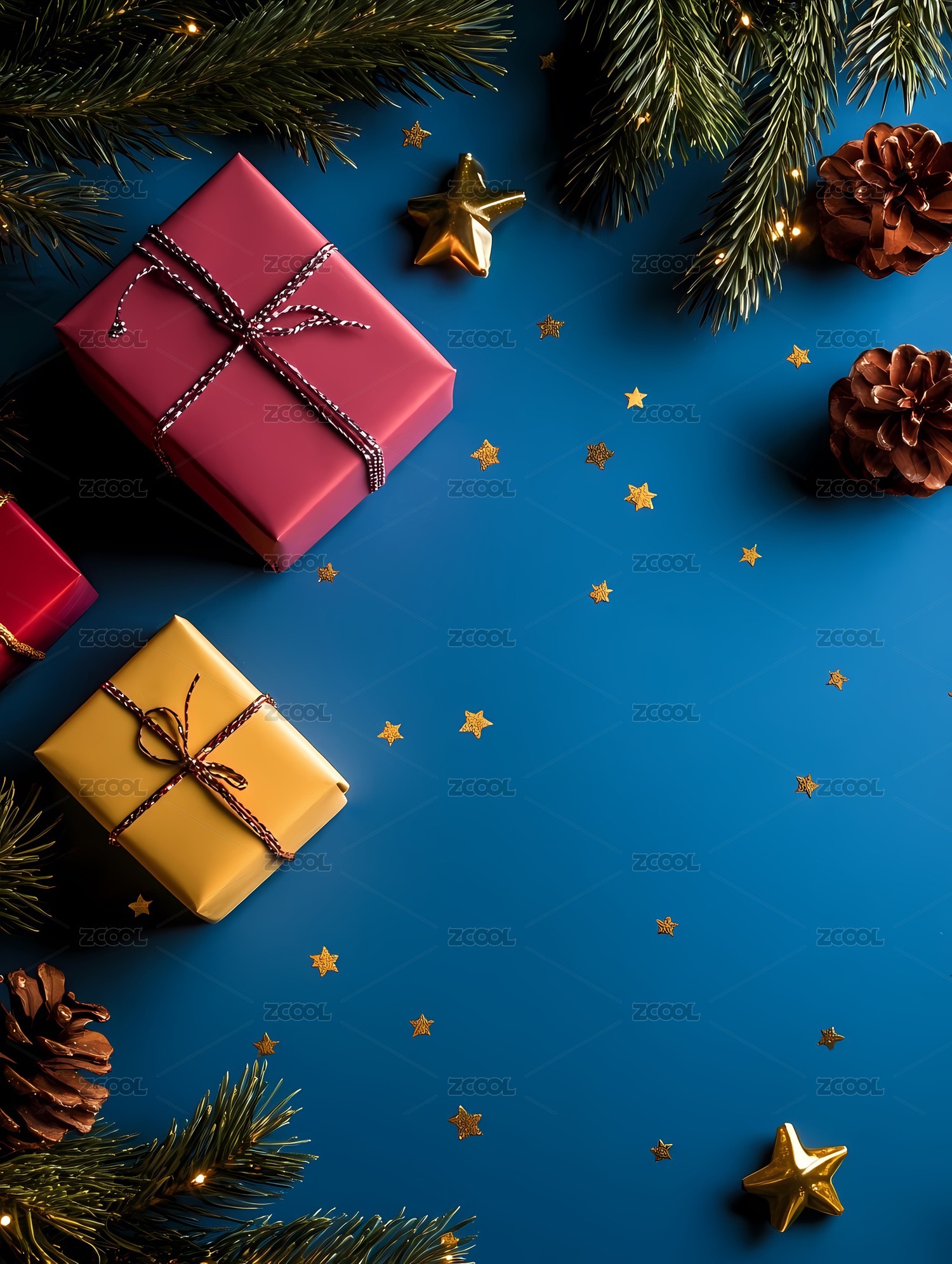圣诞节礼盒装饰新年庆祝假期节日俯视图背景