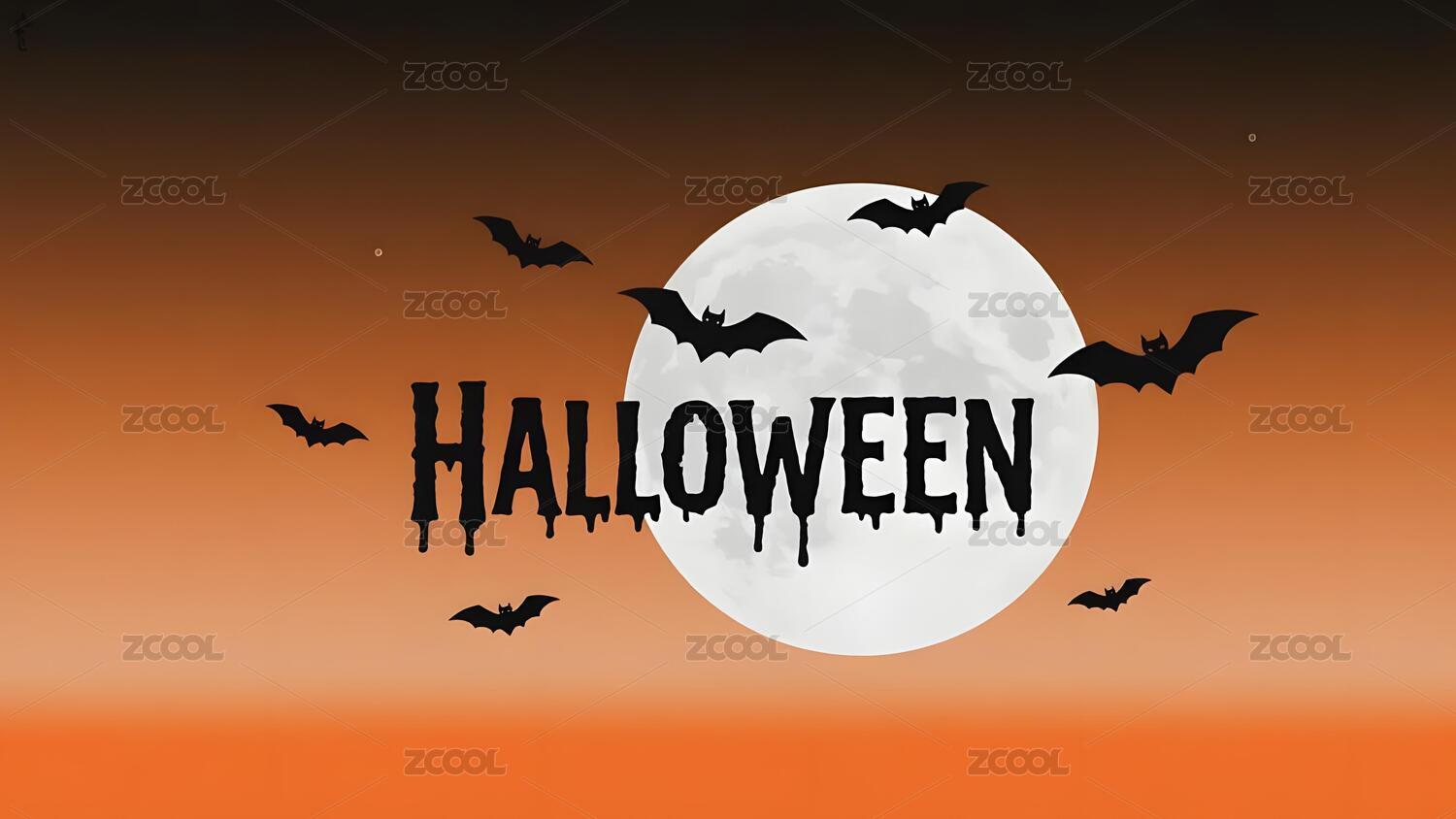 万圣节主题背景满月与蝙蝠