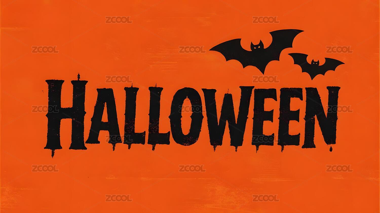 万圣节主题装饰文字与蝙蝠图案
