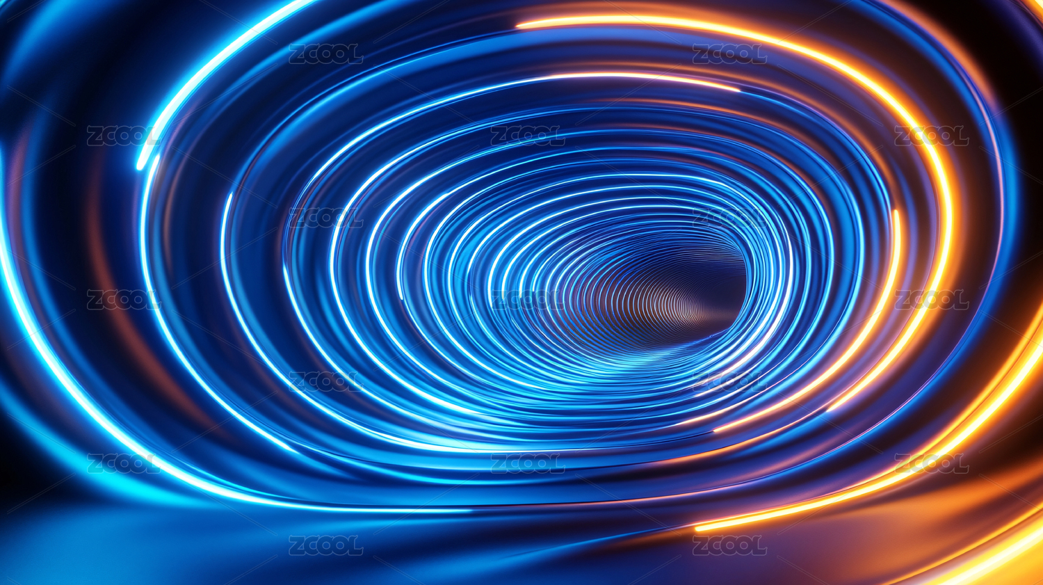 螺旋,隧道,蓝色,绿色,渐变,光线,反射,金属,质感,抽象