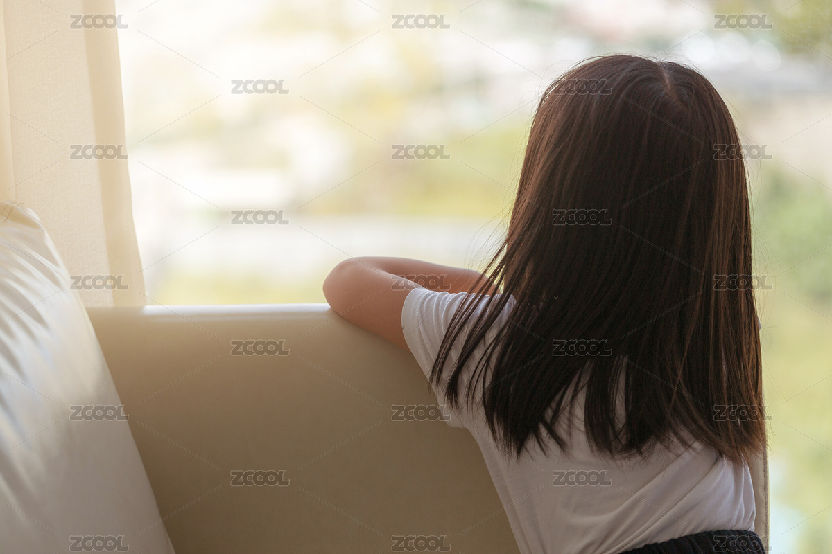 趴在沙发上看着窗外的小女孩背影