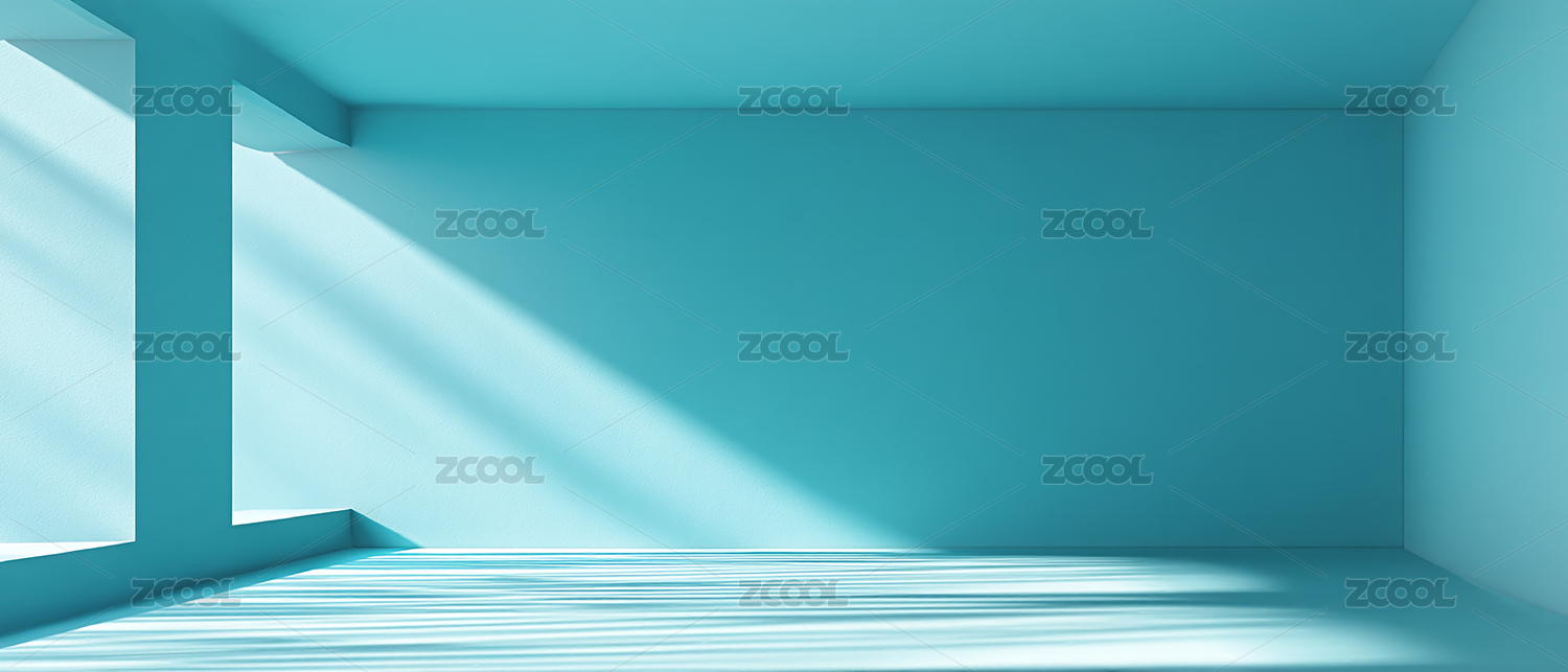 蓝色空旷房间光影