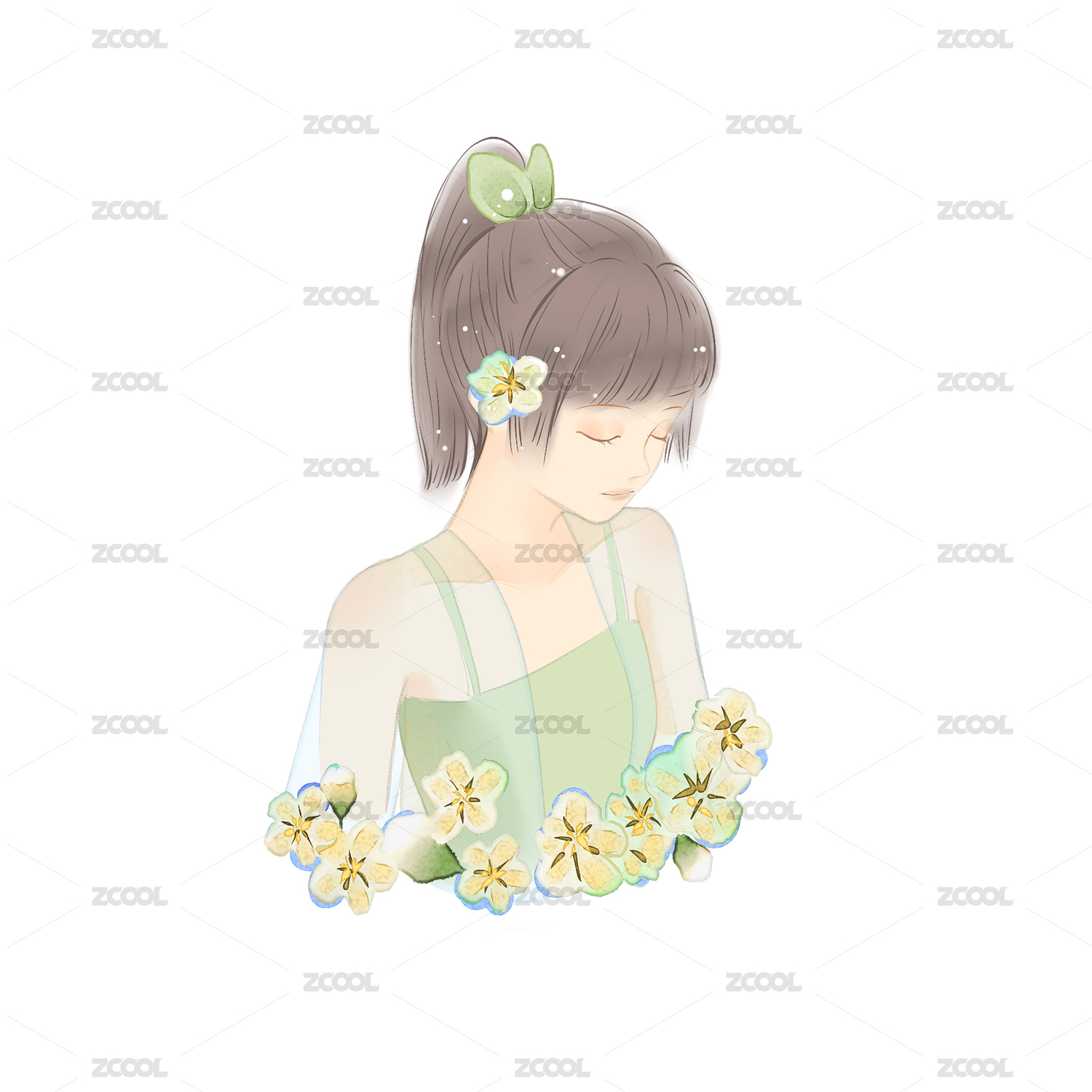 卡通,手绘,小清新,装饰,长发,女孩,人物,黄色,可爱,插画