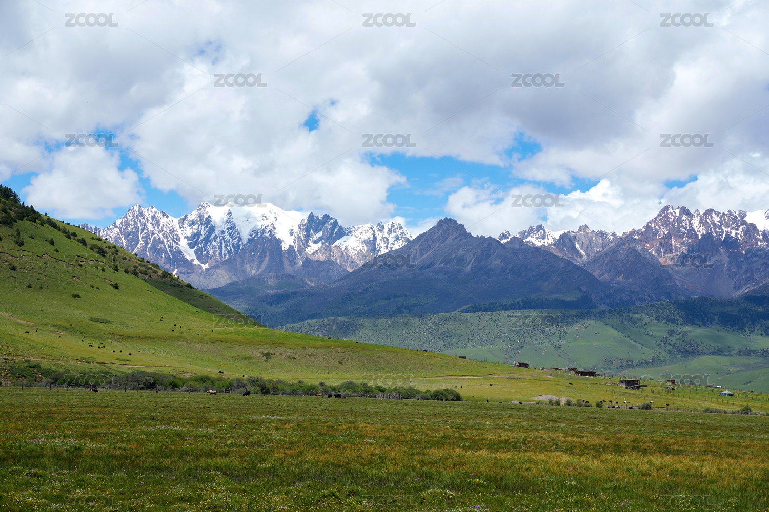 雪山,草原,森林,蓝天白云,高原,川西,自然风景,自然风光,风景,高海拔