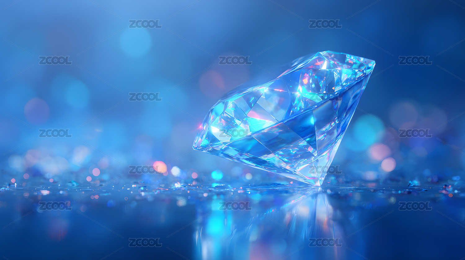蓝色光芒环绕钻石特写珠宝广告素材图