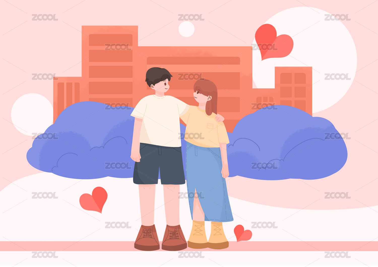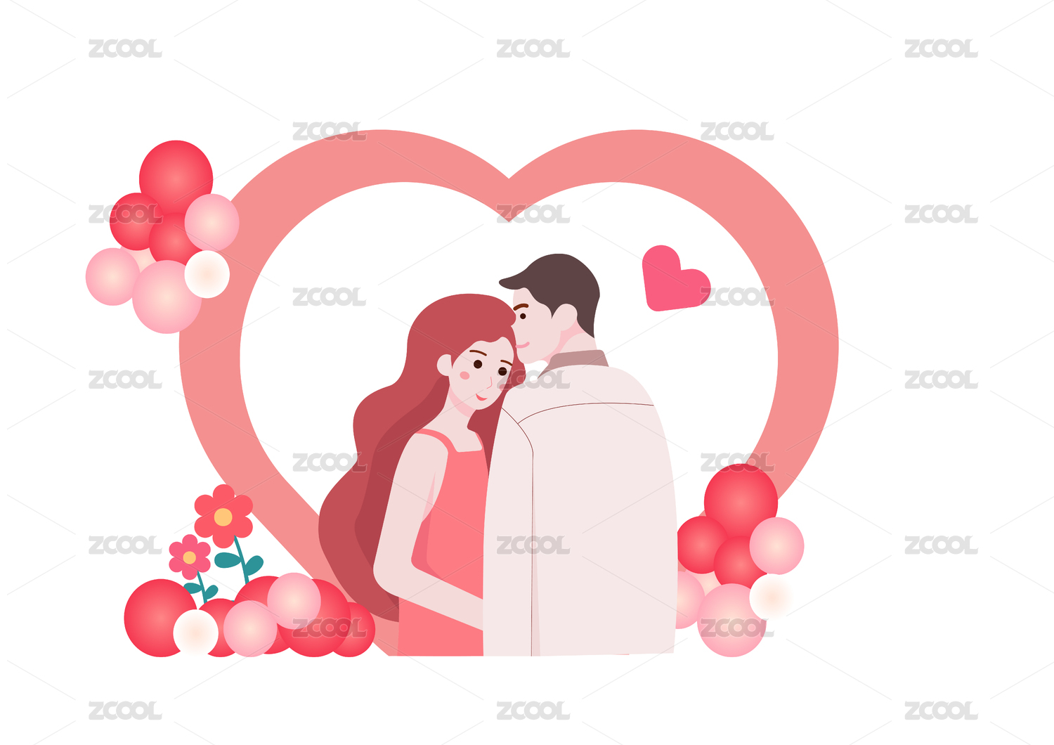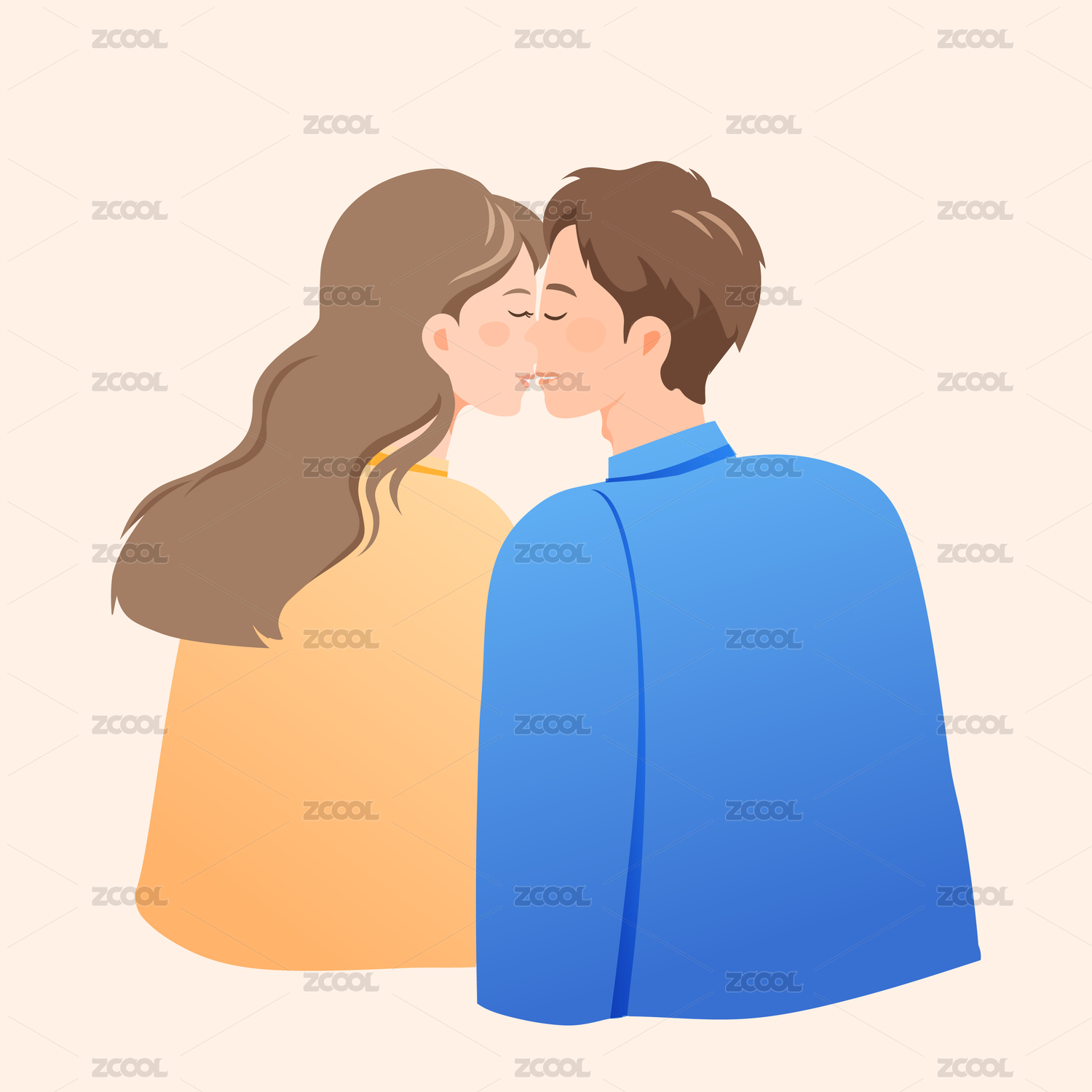 520情人节情侣亲吻插画恋人浪漫约会海报