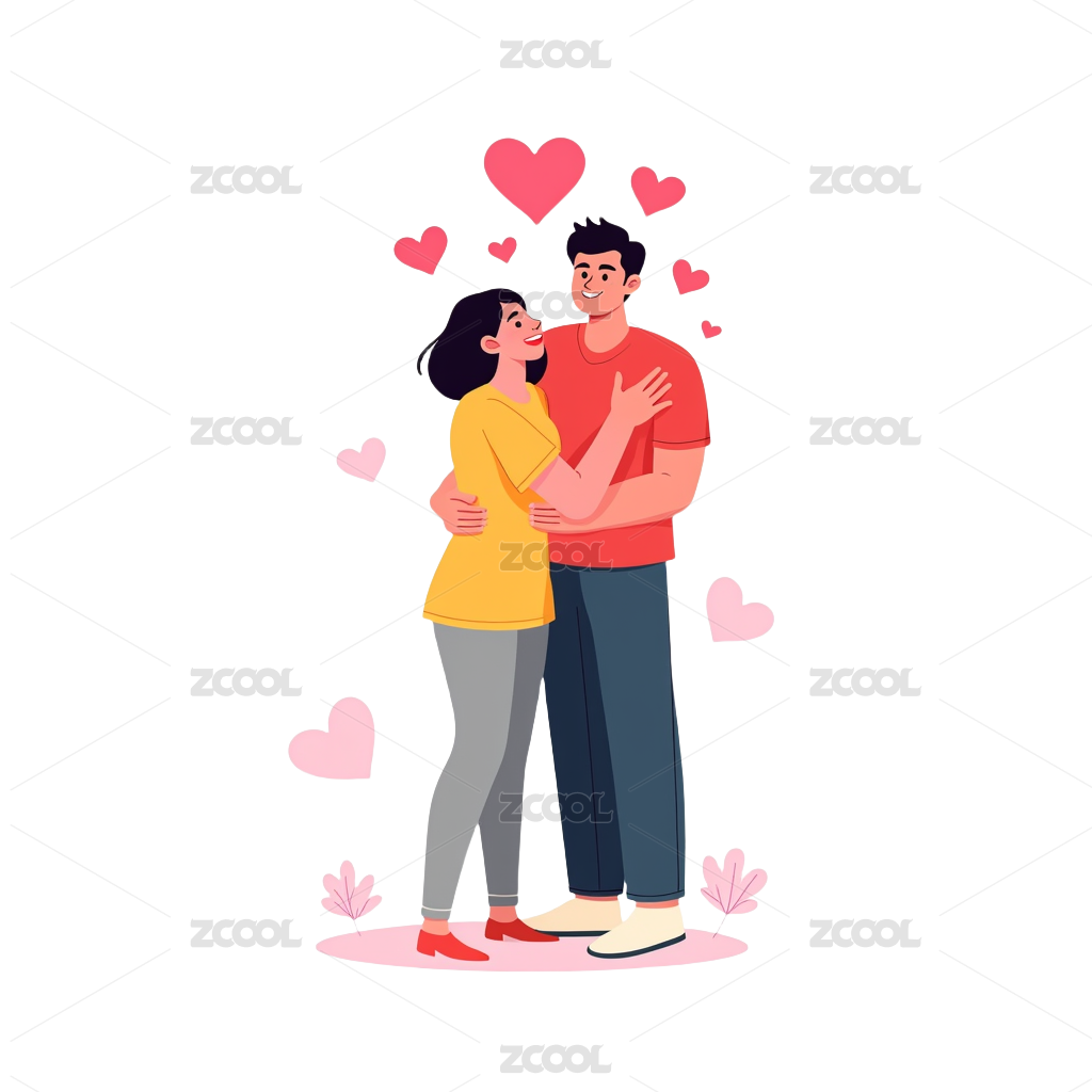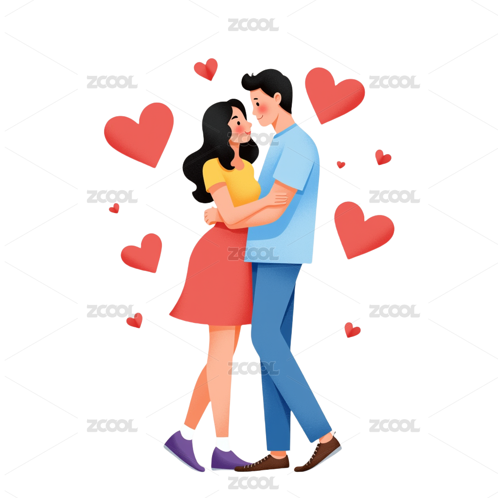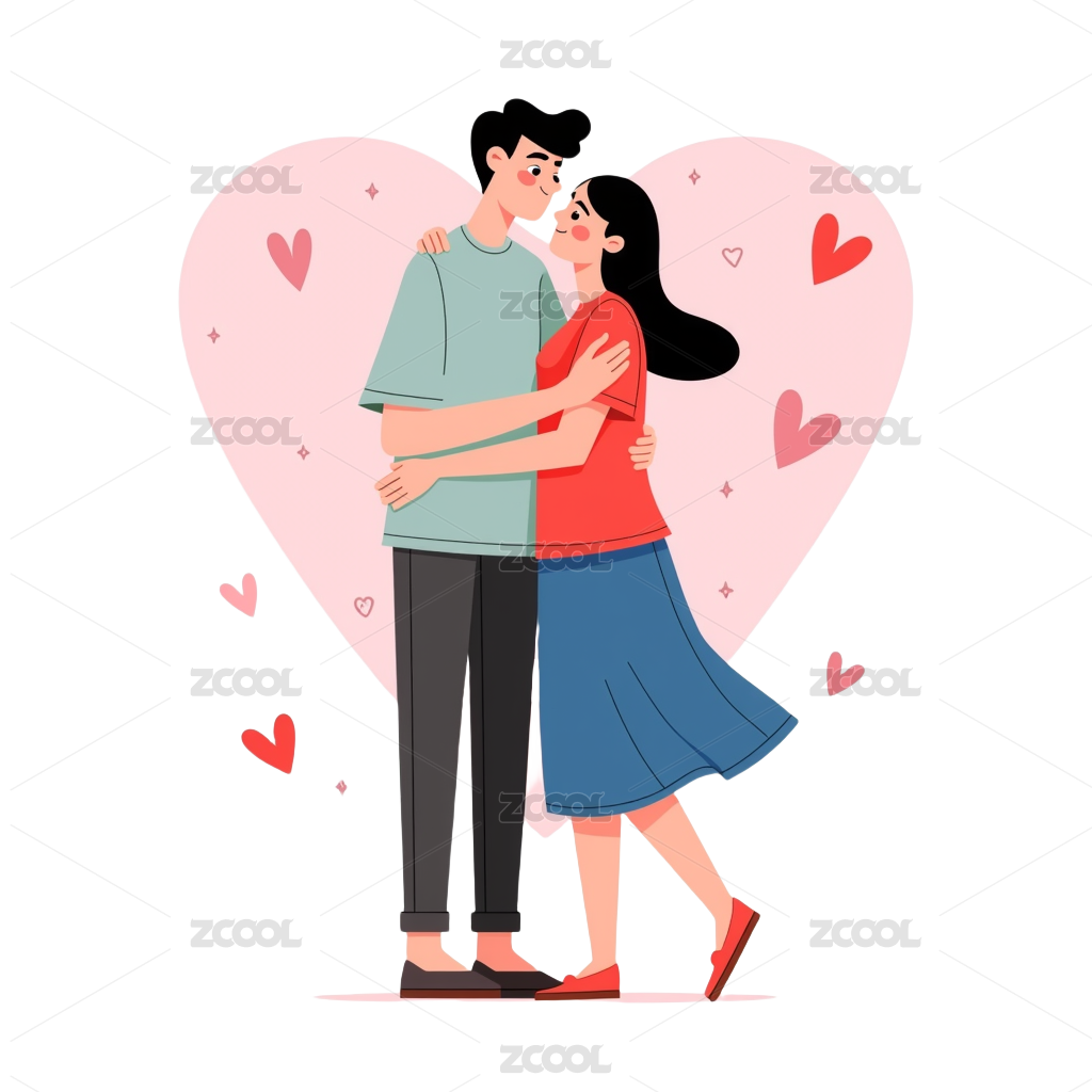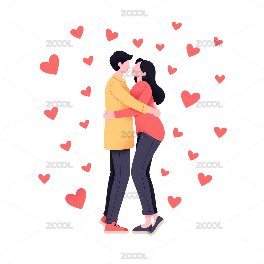 520情人节情侣亲吻插画恋人浪漫约会海报