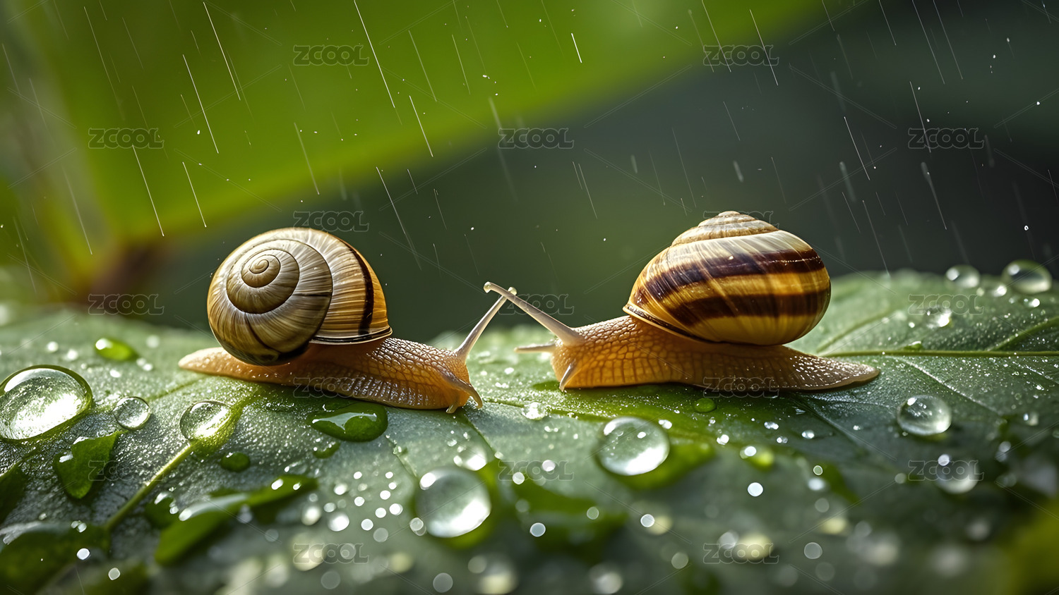下雨,绿叶,蜗牛,昆虫,雨滴,插画