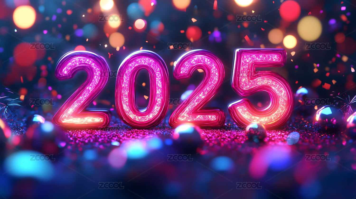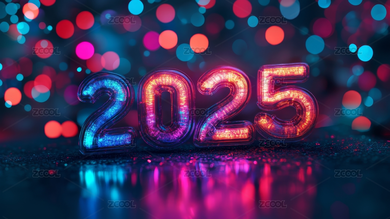 2025霓虹灯新年数字彩色背景