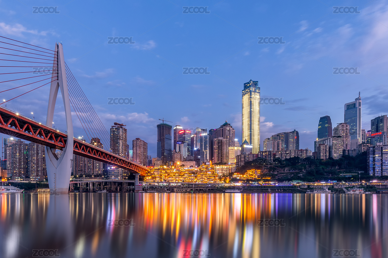解放碑洪崖洞千厮门大桥嘉陵江倒影