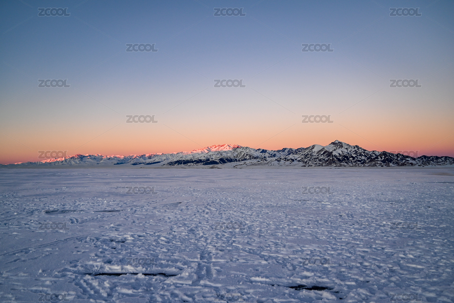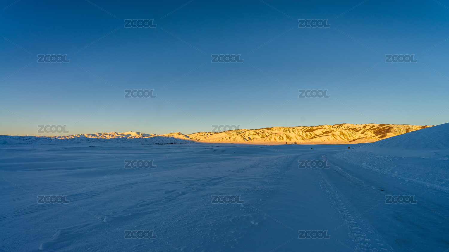 乌兰布统冬季蓝调时刻的唯美雪地雪景