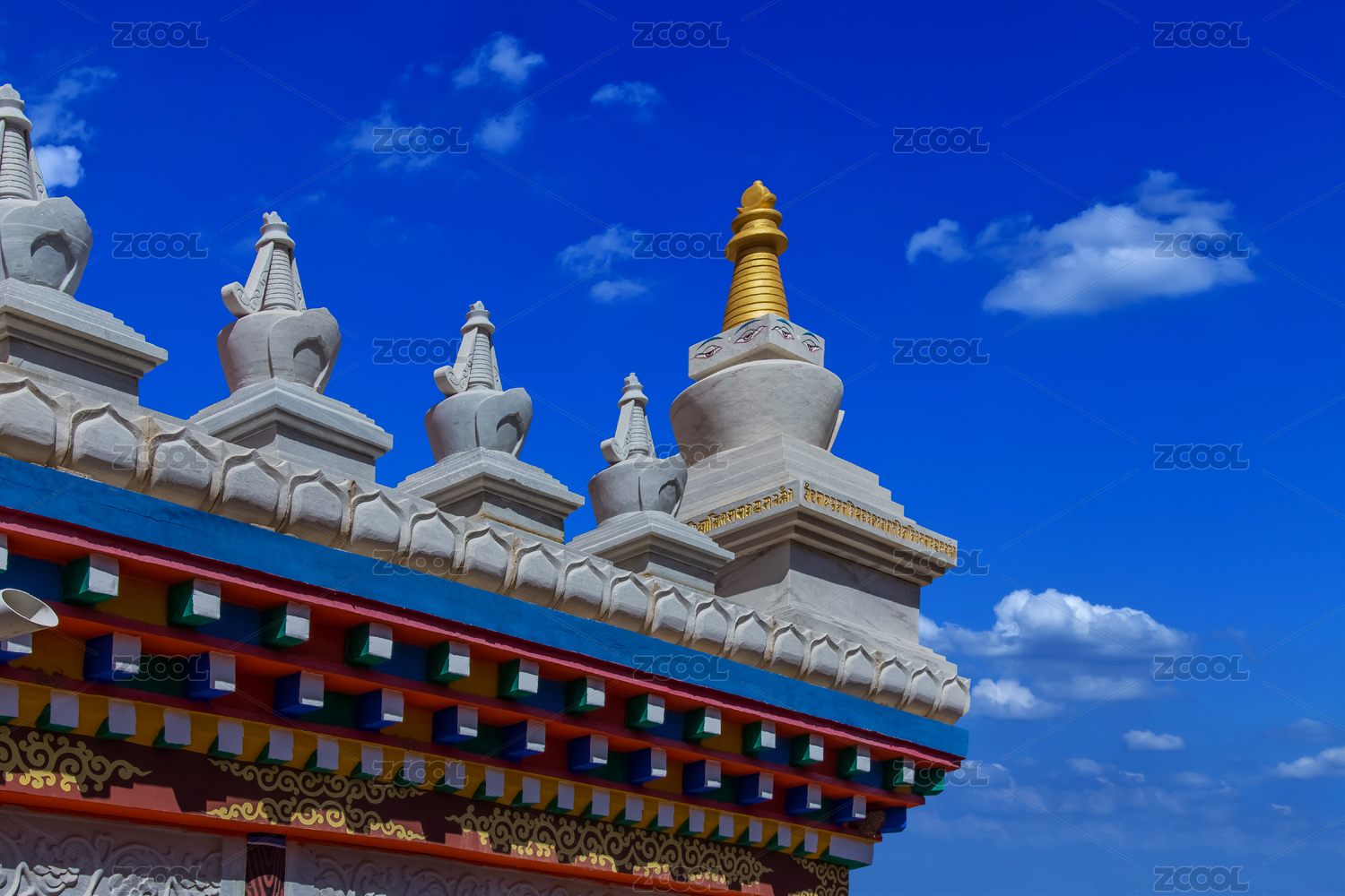天空下青海省湟中塔尔寺入口处的的白色菩提塔