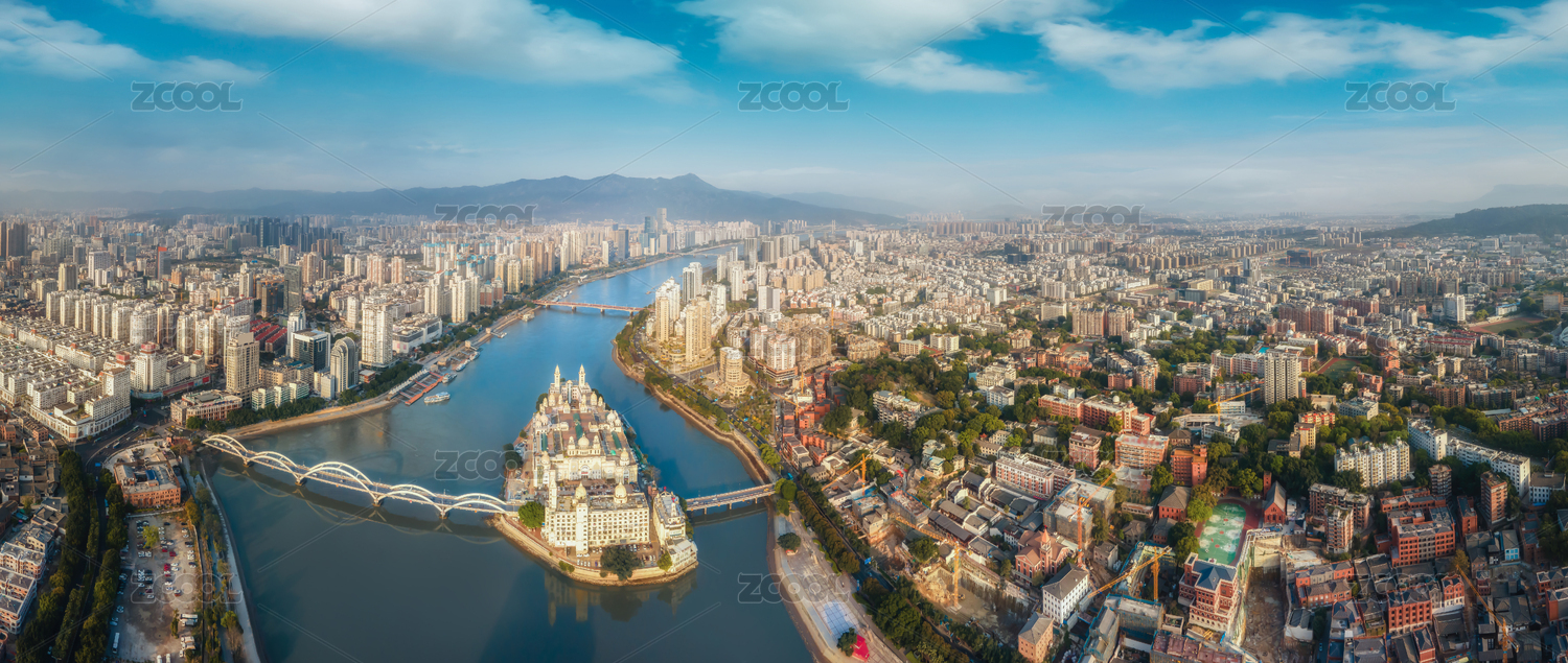 航拍福建福州中洲岛及解放大桥欧式建筑岛屿