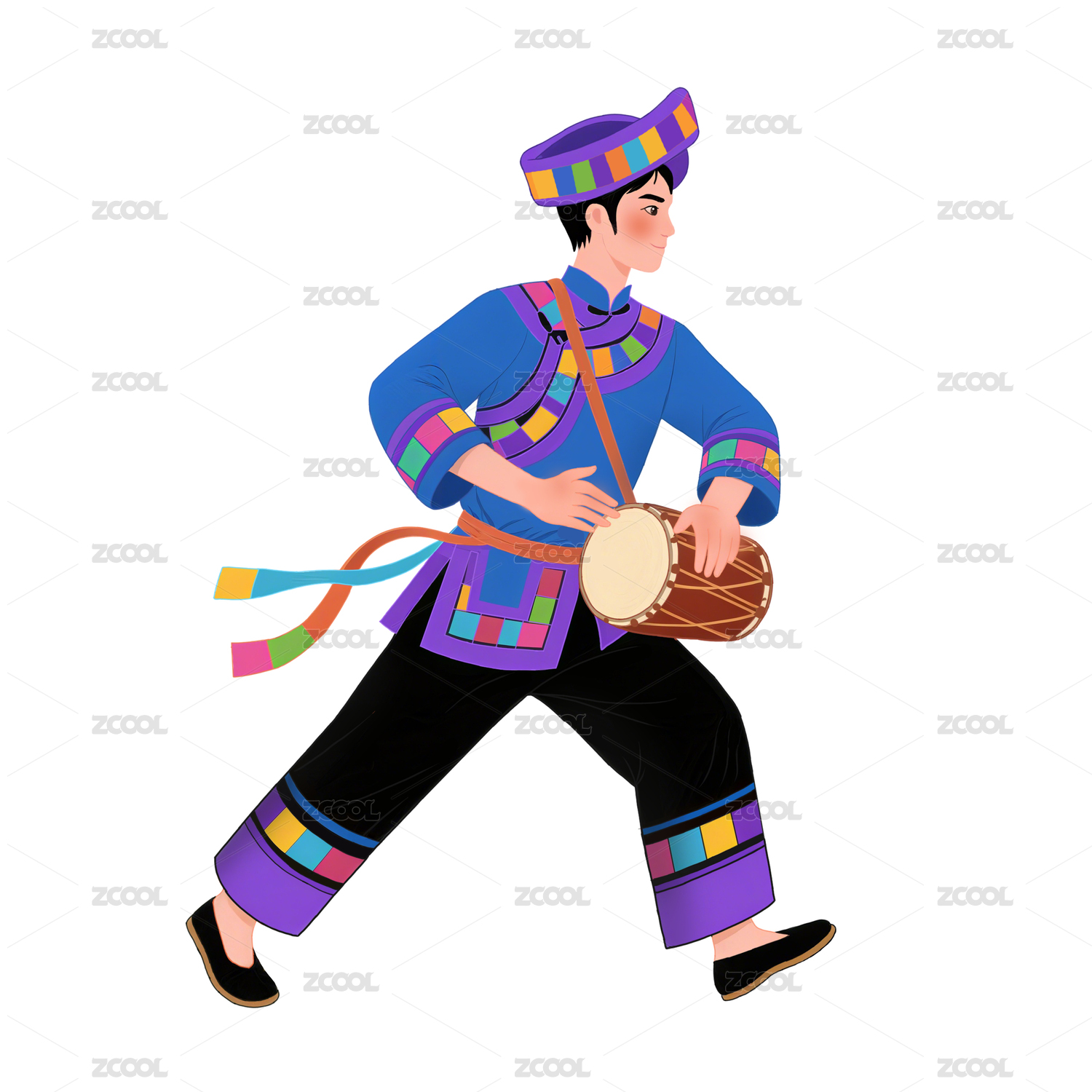 五十六民族苗族手绘插画卡通人物