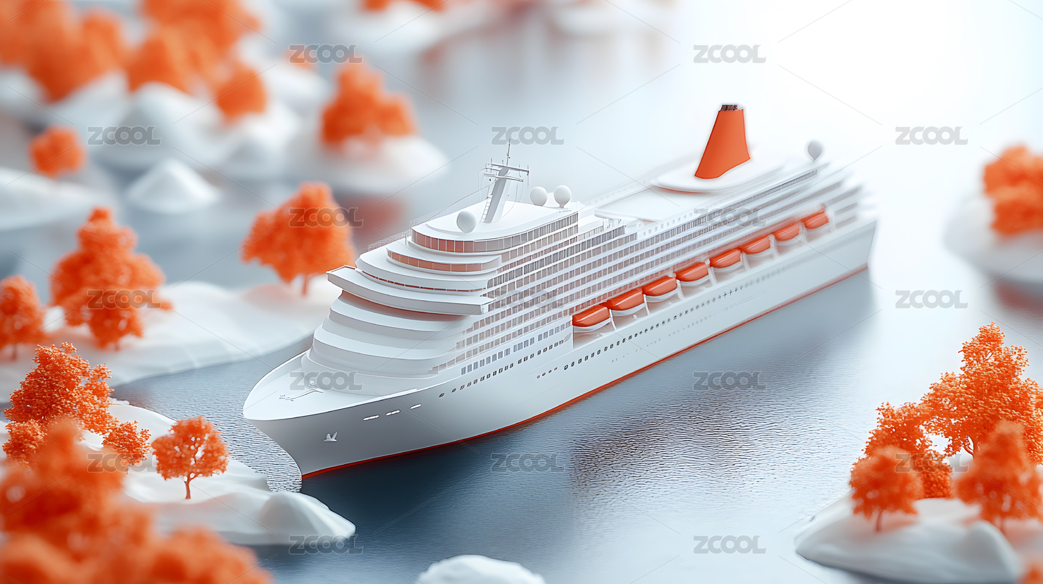 橙色邮轮出海模型