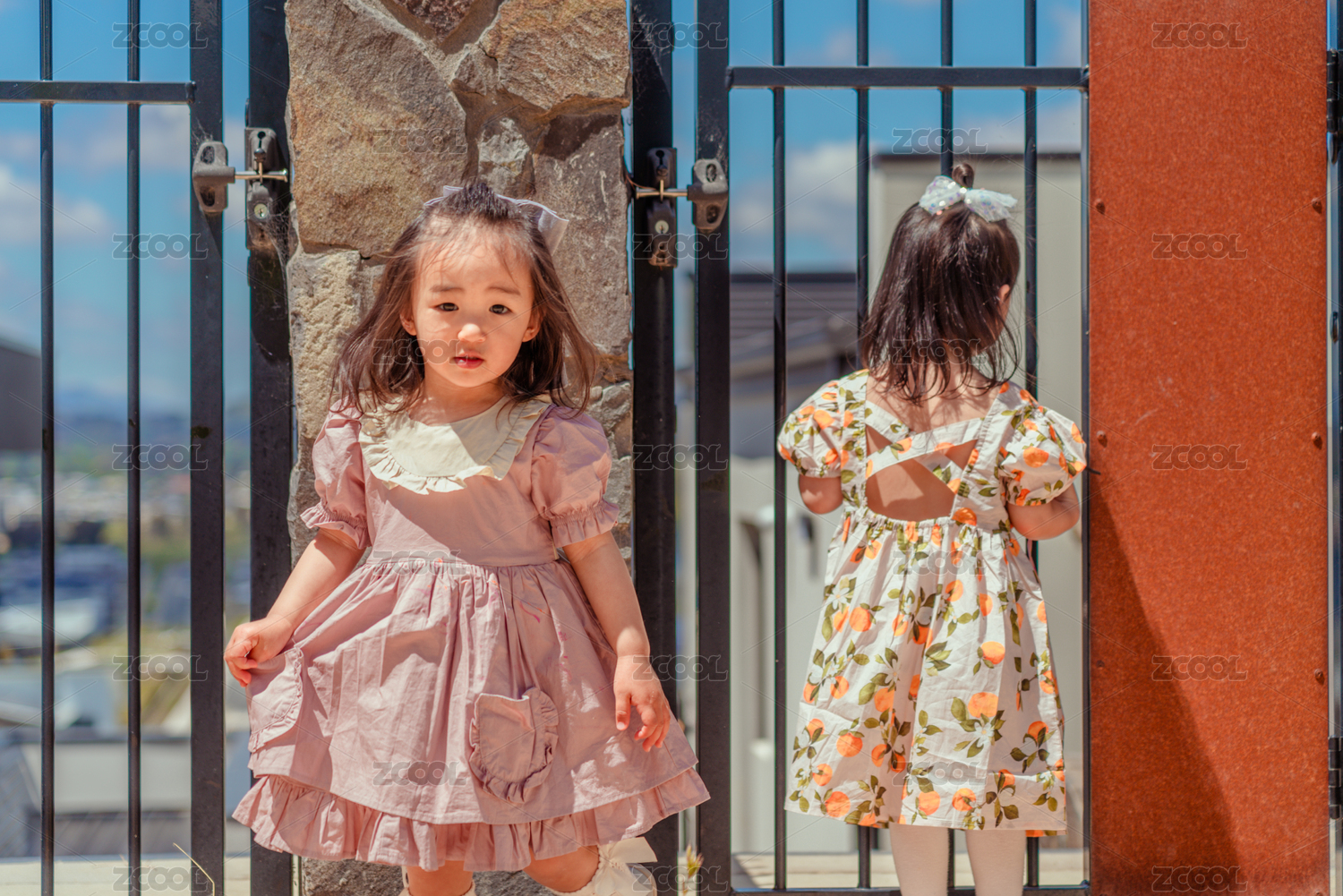 散步,山坡,草坪,女孩,幼儿,自然环境,别墅群,山道,小路,路灯