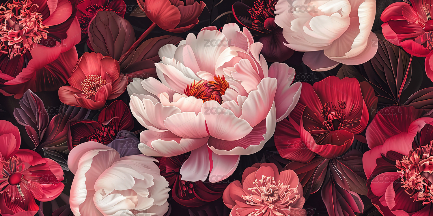 复古怀旧牡丹花卉壁纸背景海报装饰画背景