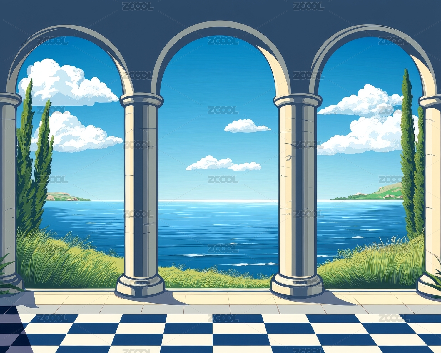蓝色,花瓶,花,鸟,大理石,地板,海洋,日出,风景,景观