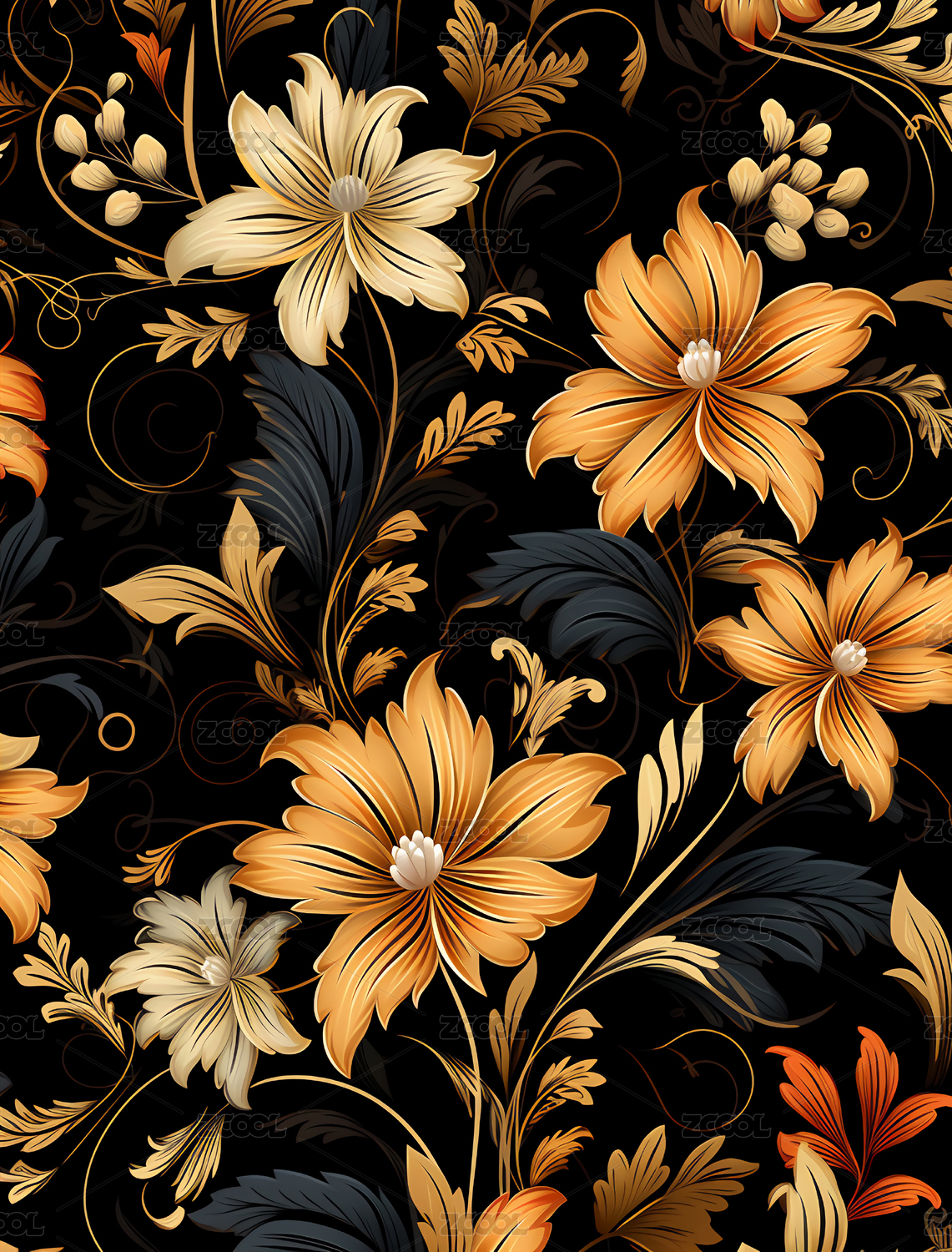 橙色,花朵,叶子,纺织品,植物,花卉,图案,绘画,新鲜,水彩