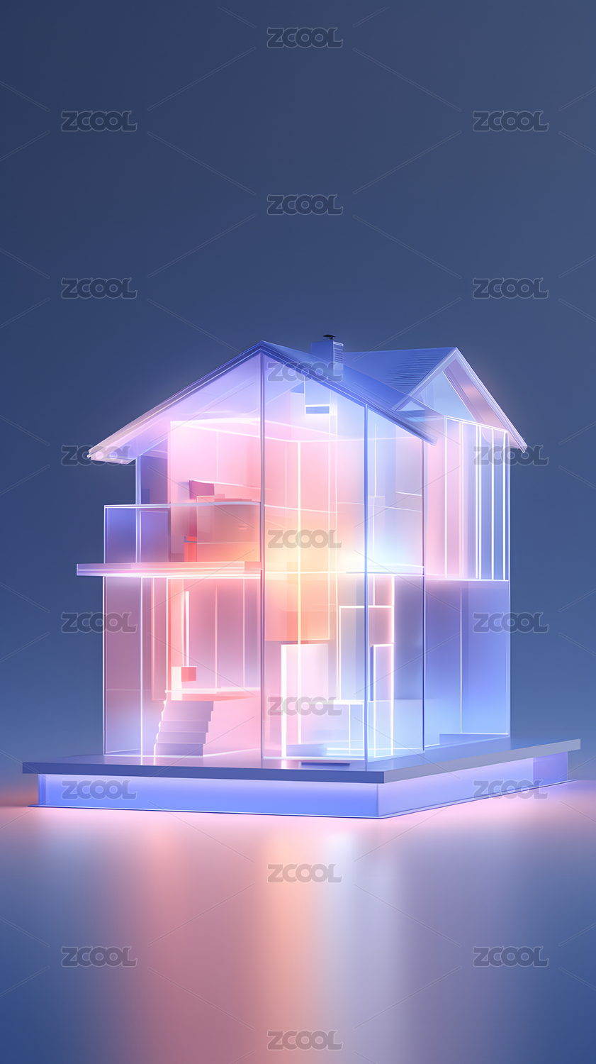 未来,建筑,多彩,房屋,透明,建造,液体,箔,场景,几何