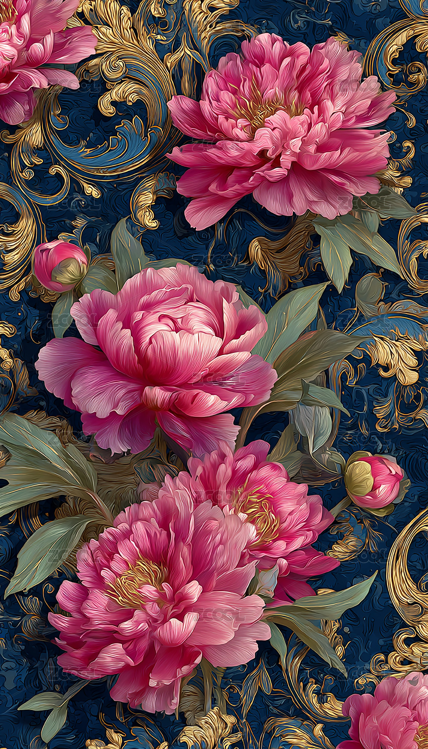 奶油,牡丹,花园,花卉,图案,植物,水彩,复古,自然,图形