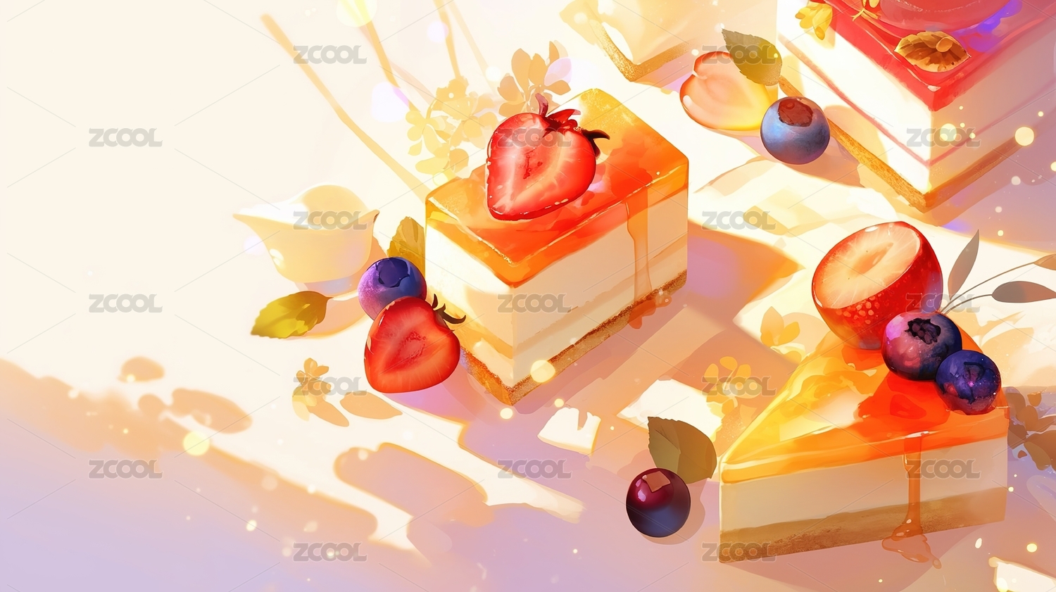 草莓蓝莓芝士蛋糕,漫画风格食物