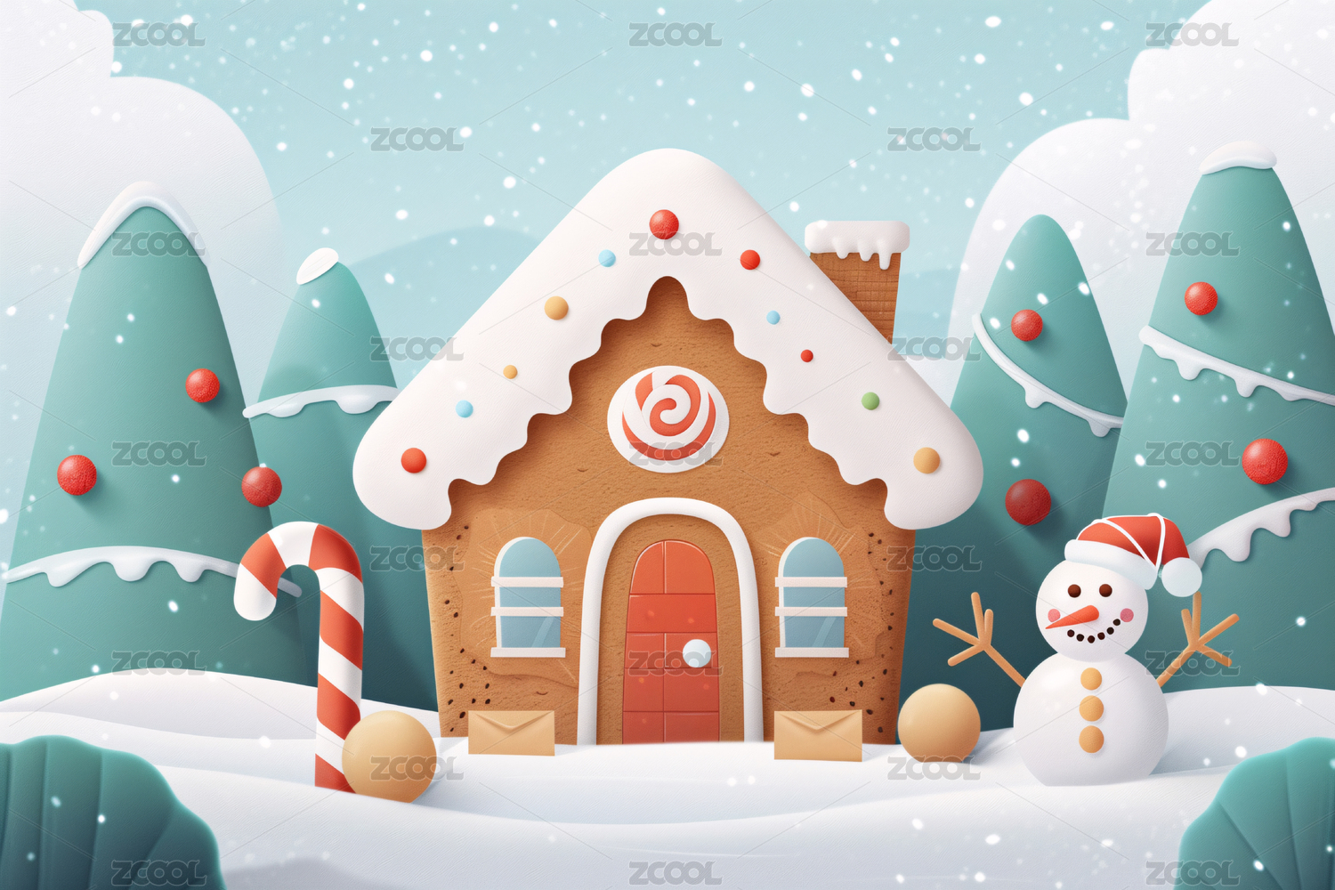 圣诞节下雪房子立冬节气雪人房屋场景插画