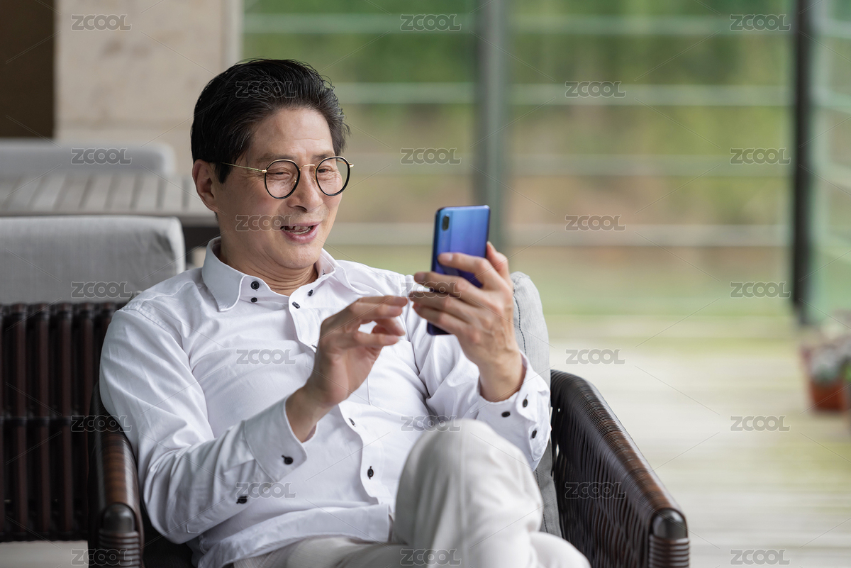 老年人,亚洲人,手机,男人,电子设备,视频通话,无线技术,生活方式,家庭生活,微笑