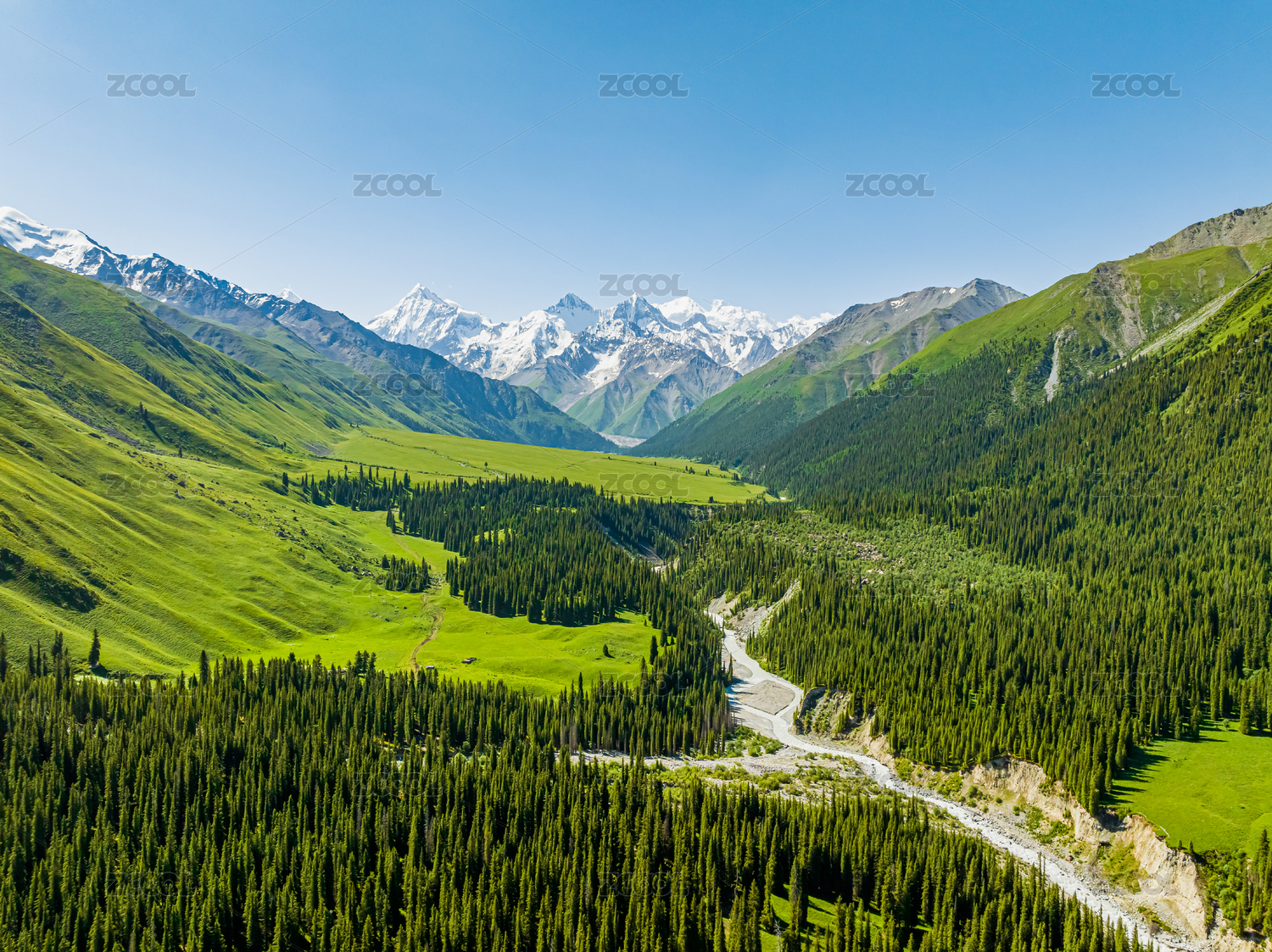 中国新疆伊犁昭苏夏塔草原雪山自然风光