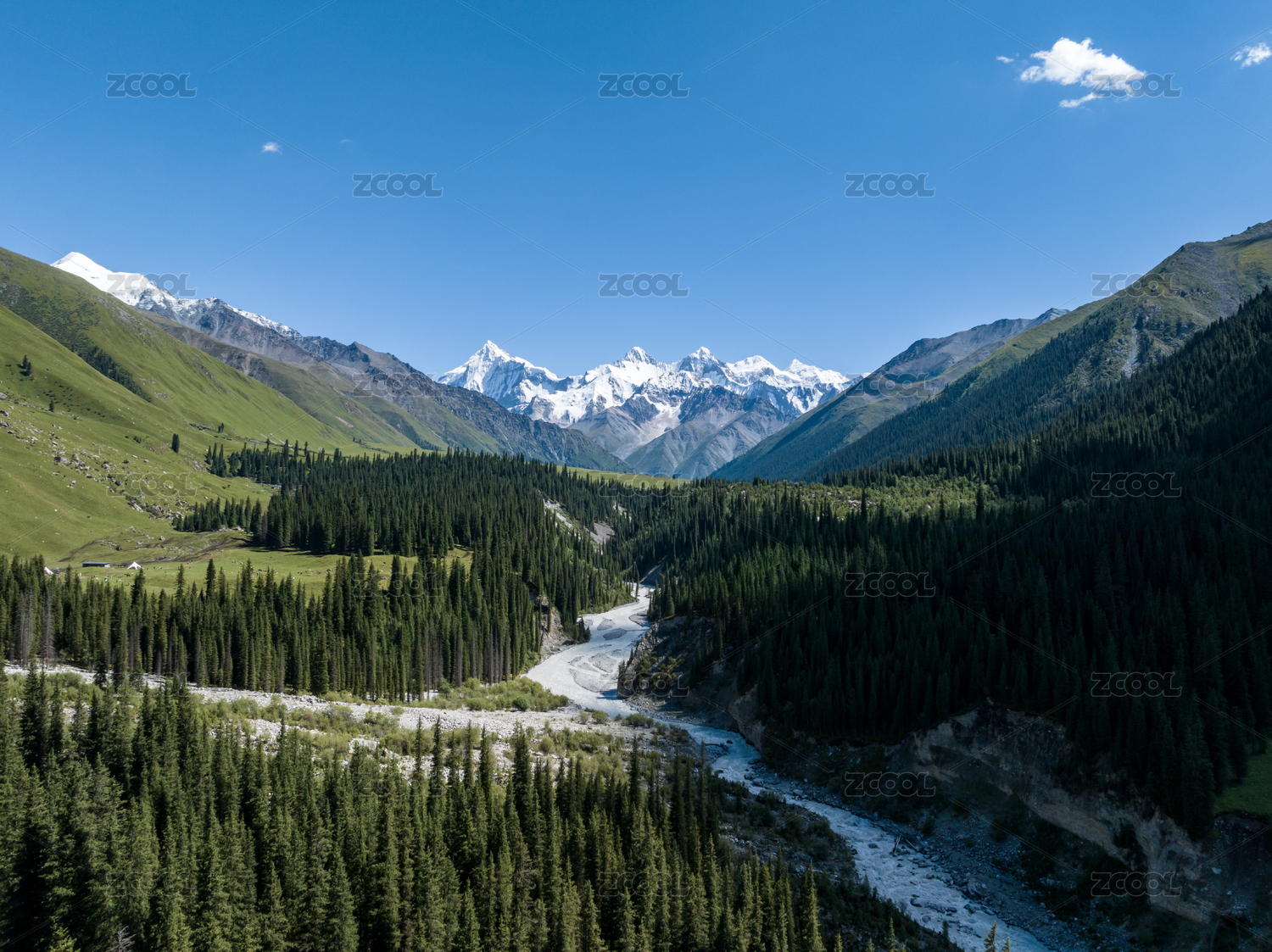 航拍,新疆,伊犁,昭苏,夏塔,夏塔古道,景区,木扎尔特峰,雪山,峡谷