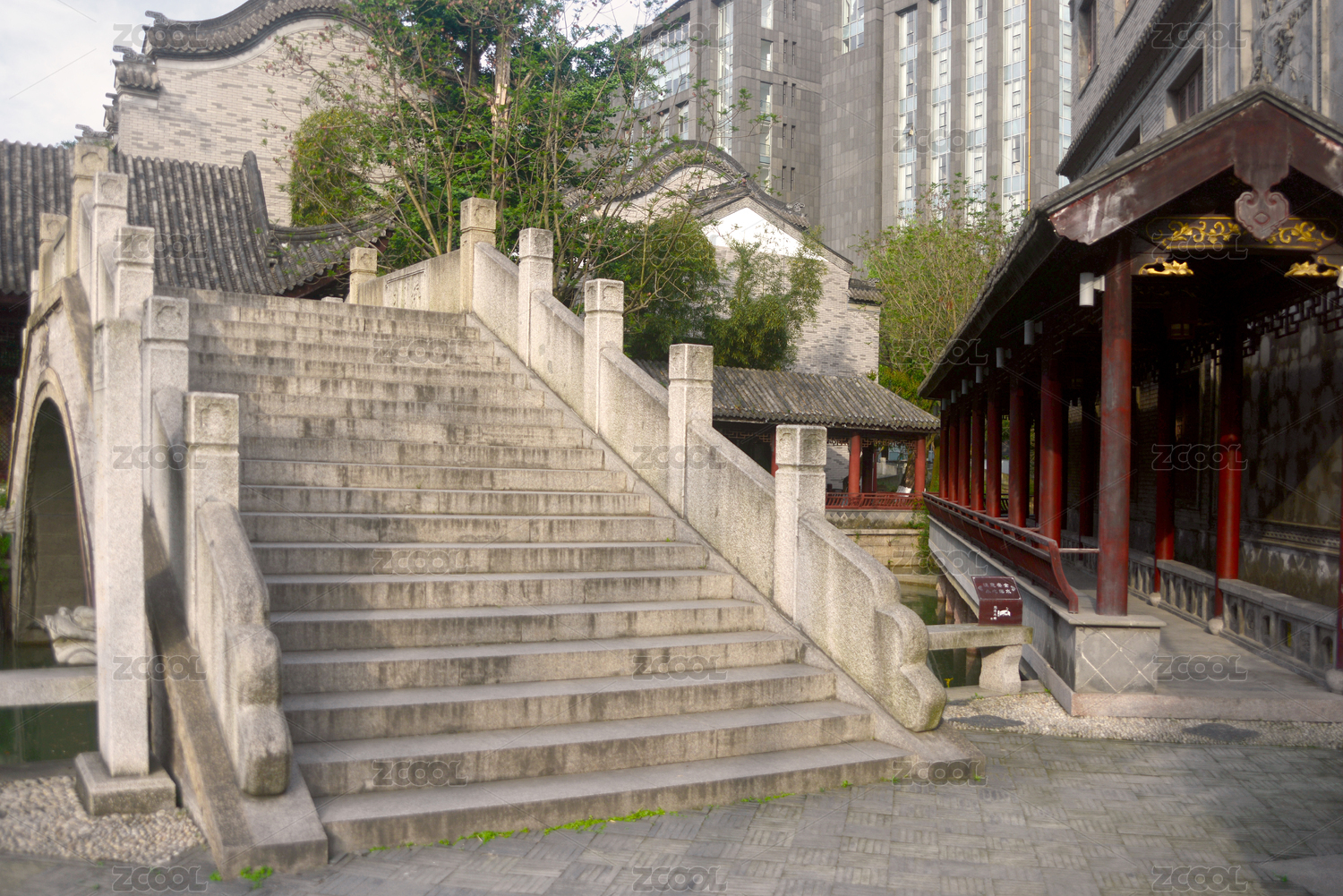 四川成都文殊坊中式仿古小楼阶梯栅栏柴门
