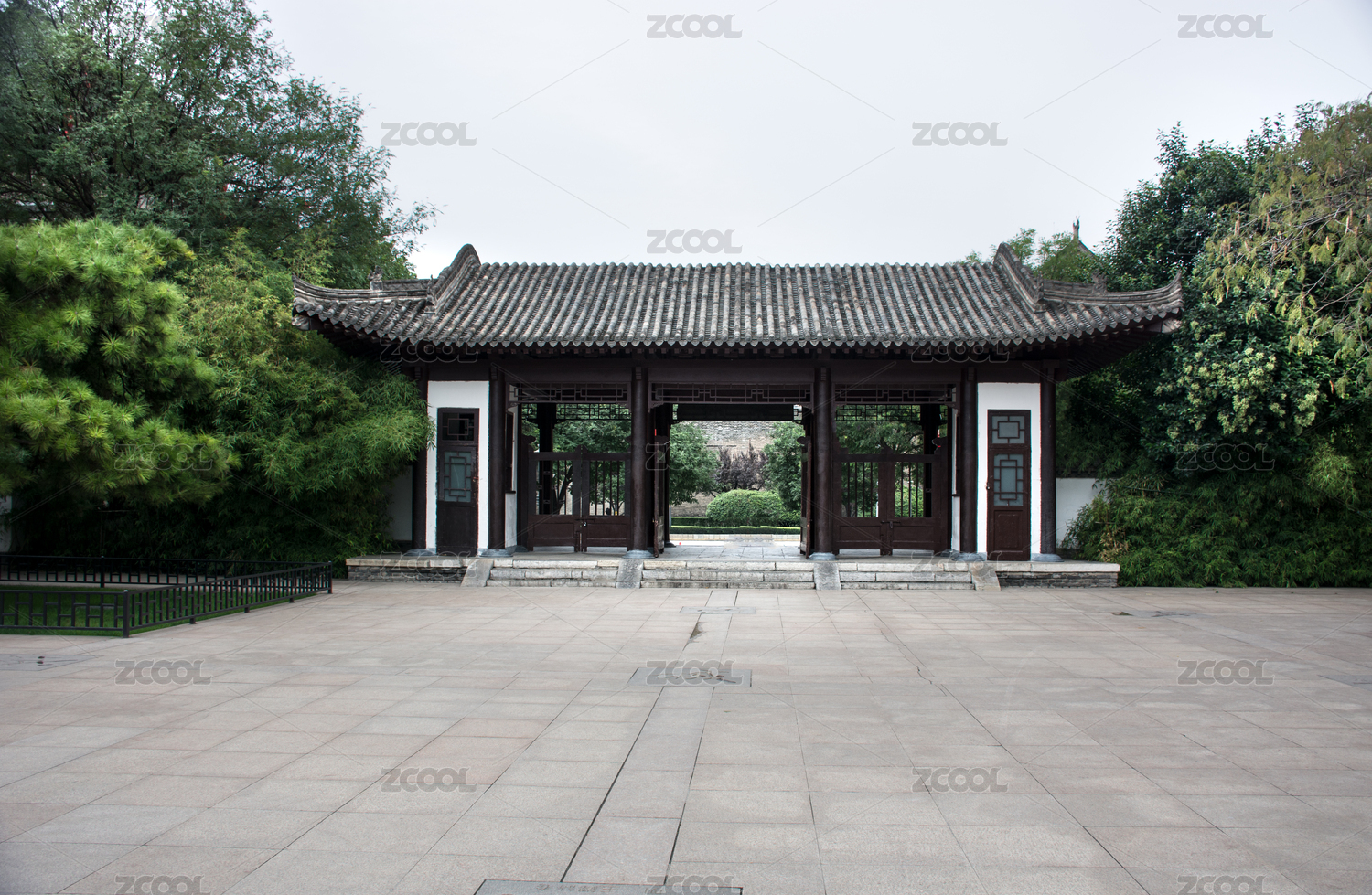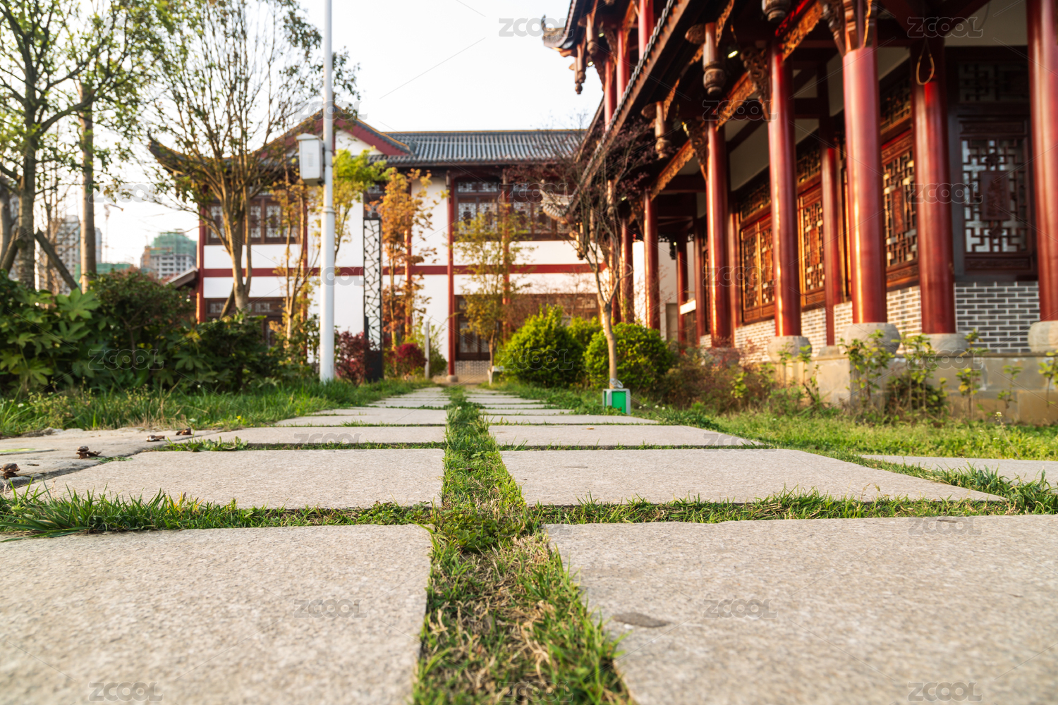 贵州毕节市同心城市公园里的仿古建筑和走道