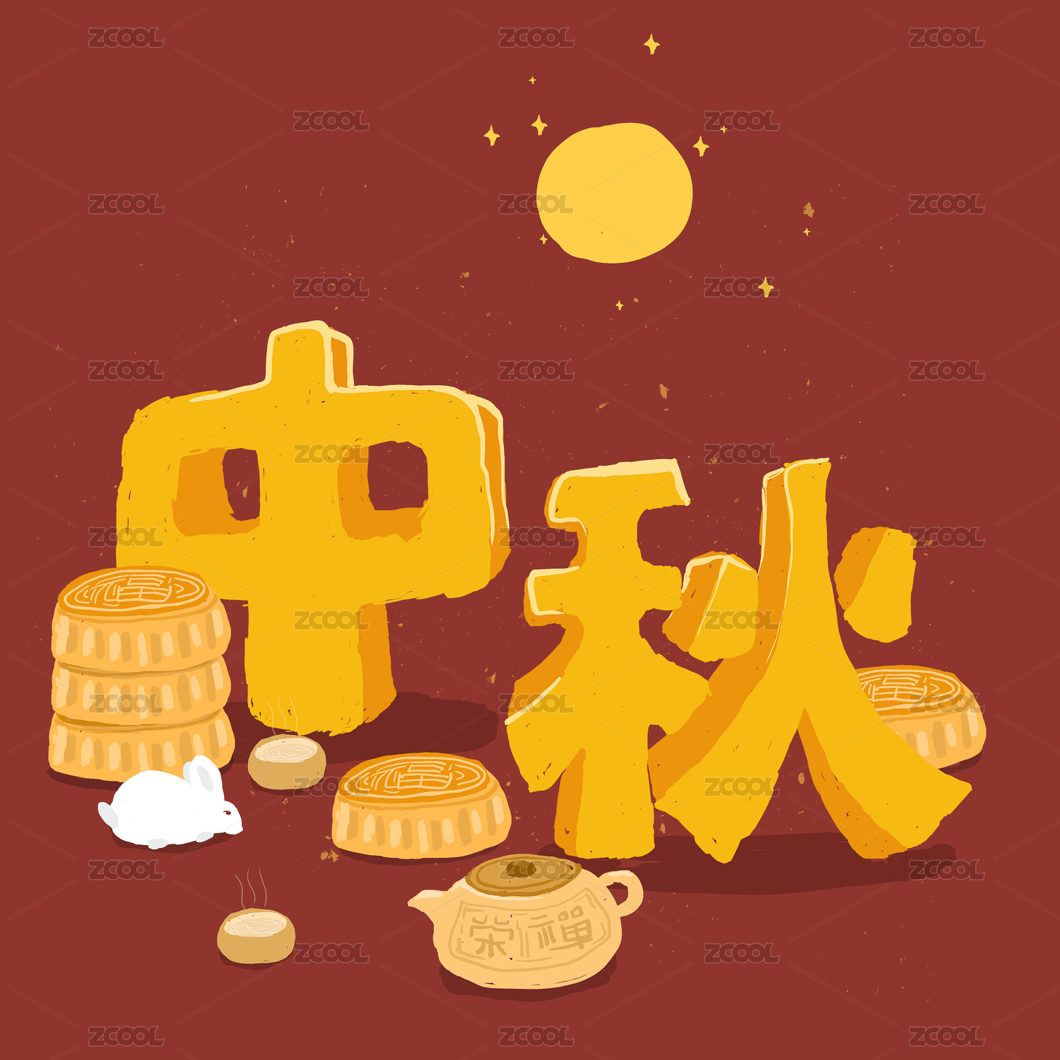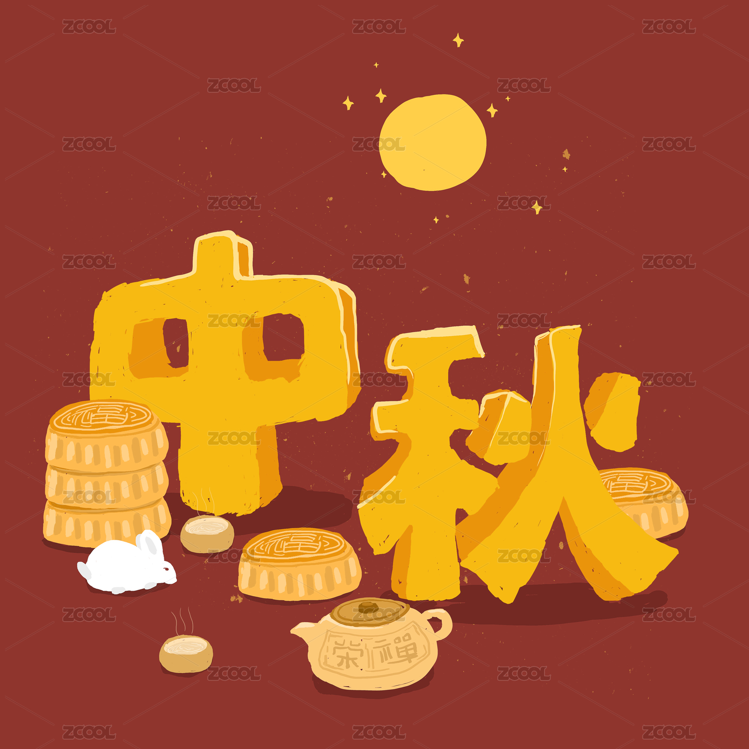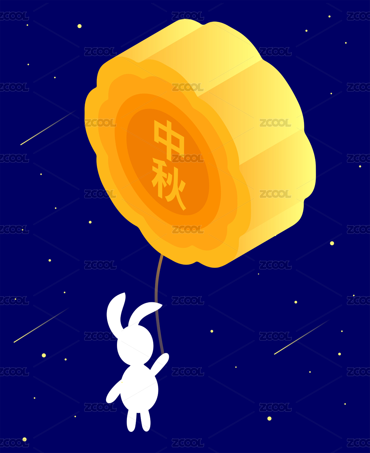 中秋佳节可爱的兔子抢月饼矢量插画素材