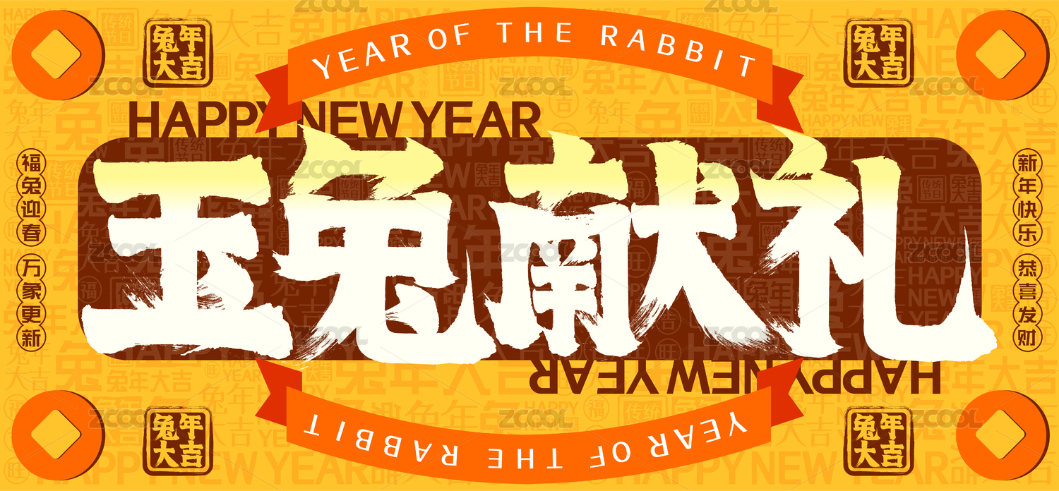玉兔献礼国潮铜钱文字装饰春节新年书法字