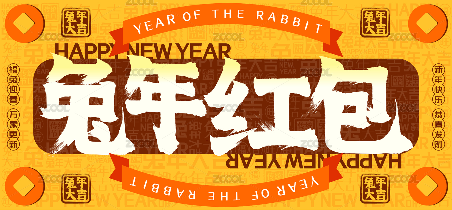 兔年红包国潮铜钱文字装饰春节新年书法字