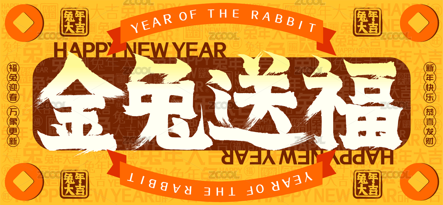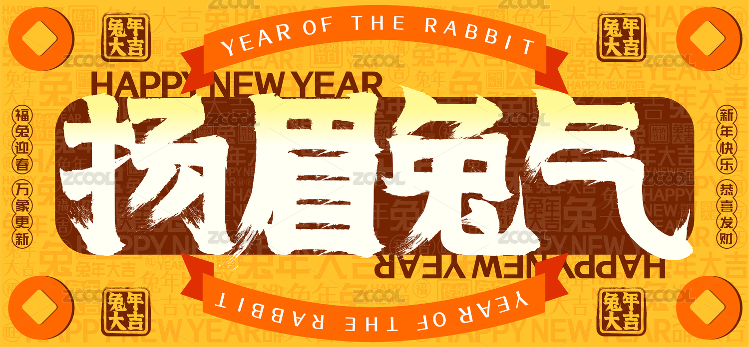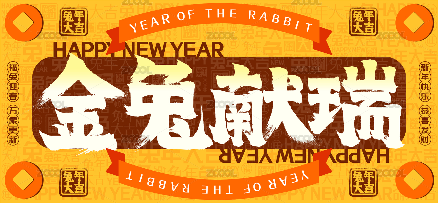 玉兔迎祥国潮铜钱文字装饰春节新年书法字