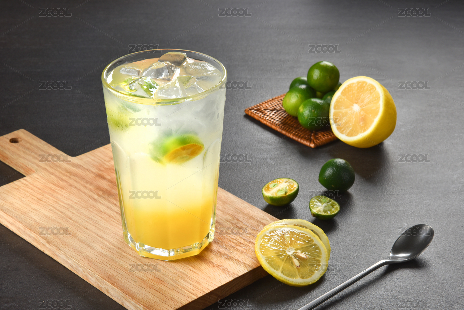 杯里的水果柠檬果汁饮品饮料冷饮冰饮