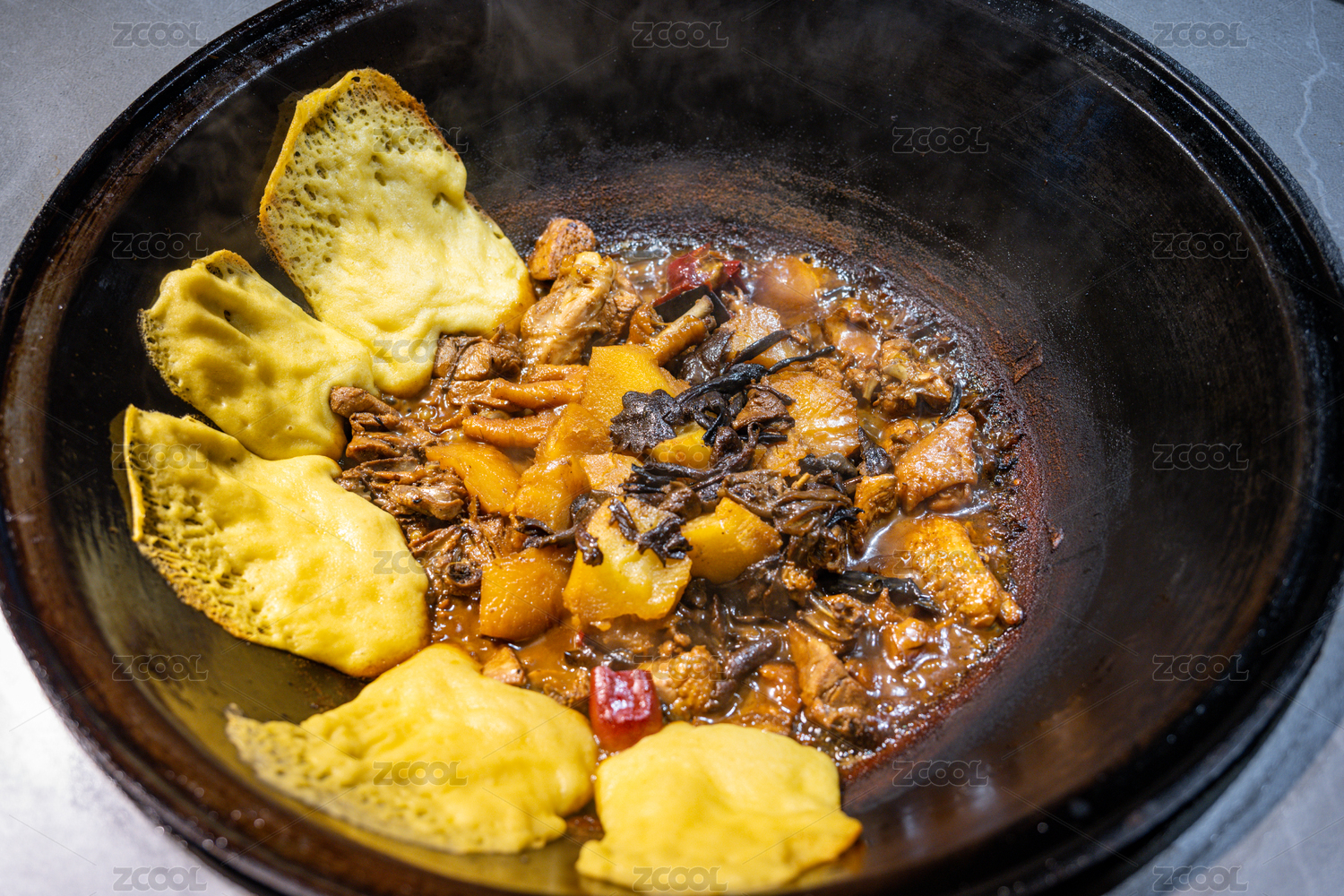 中国四川成都清汤黄牛肉火锅及玉米锅边馍