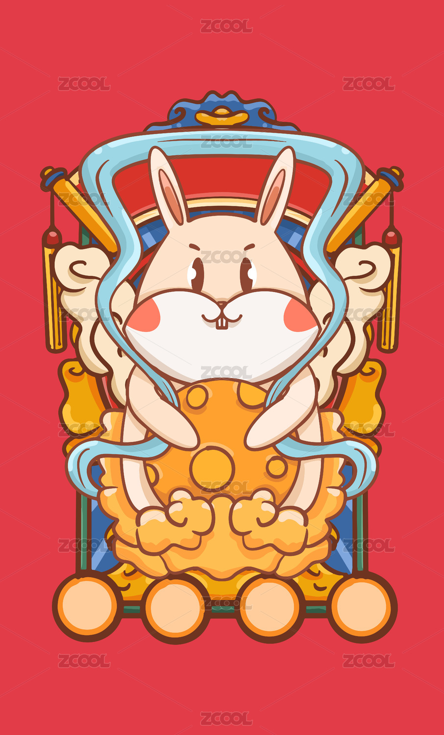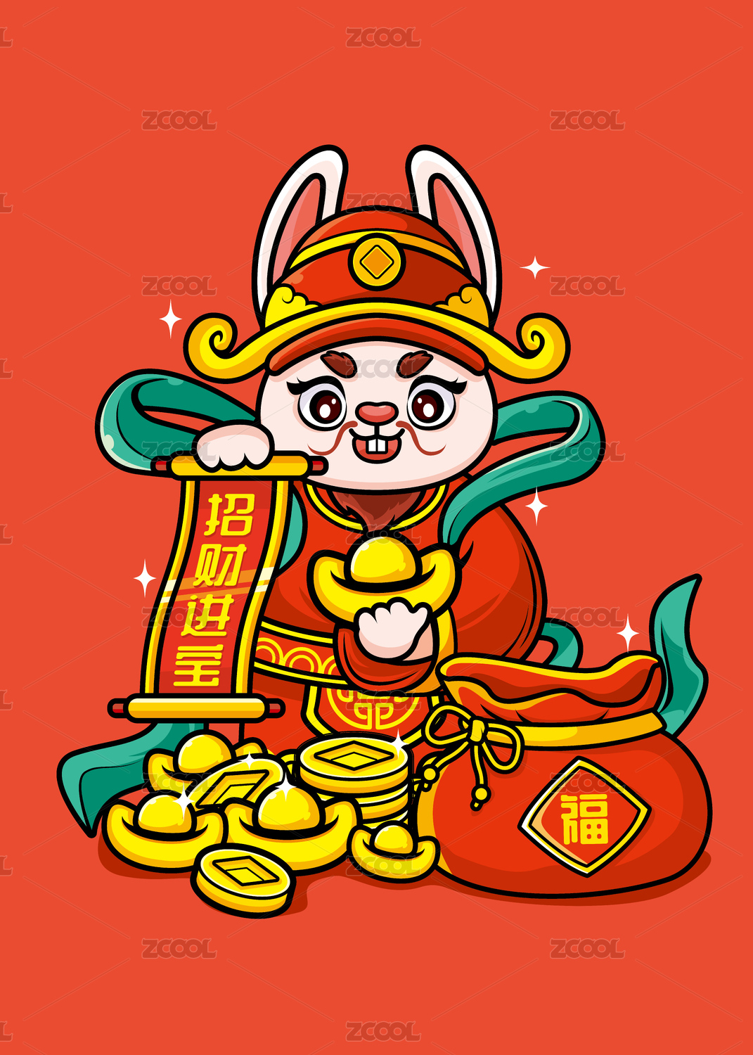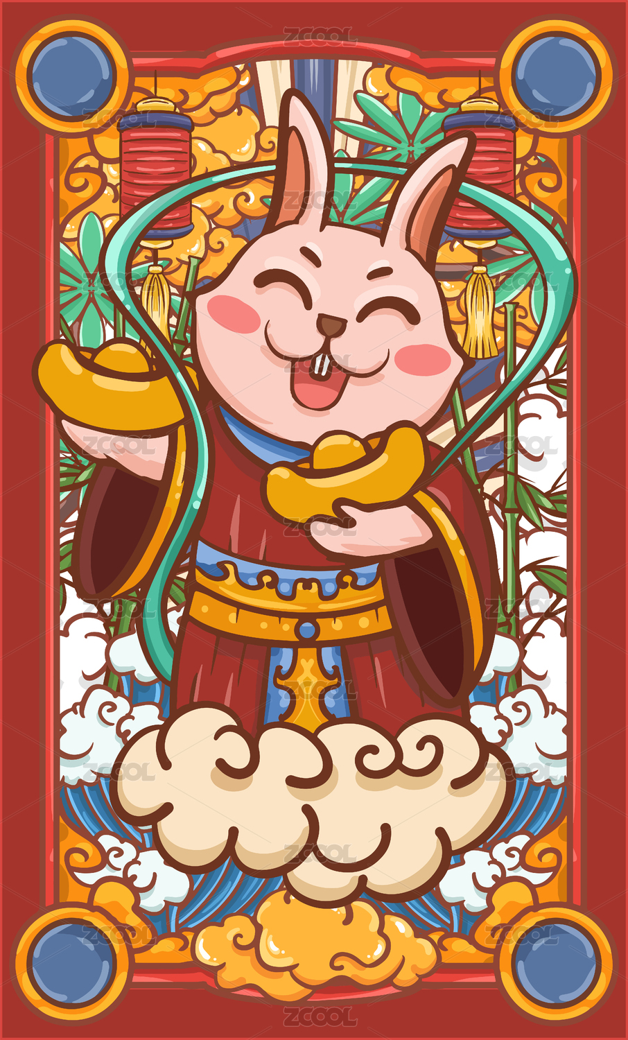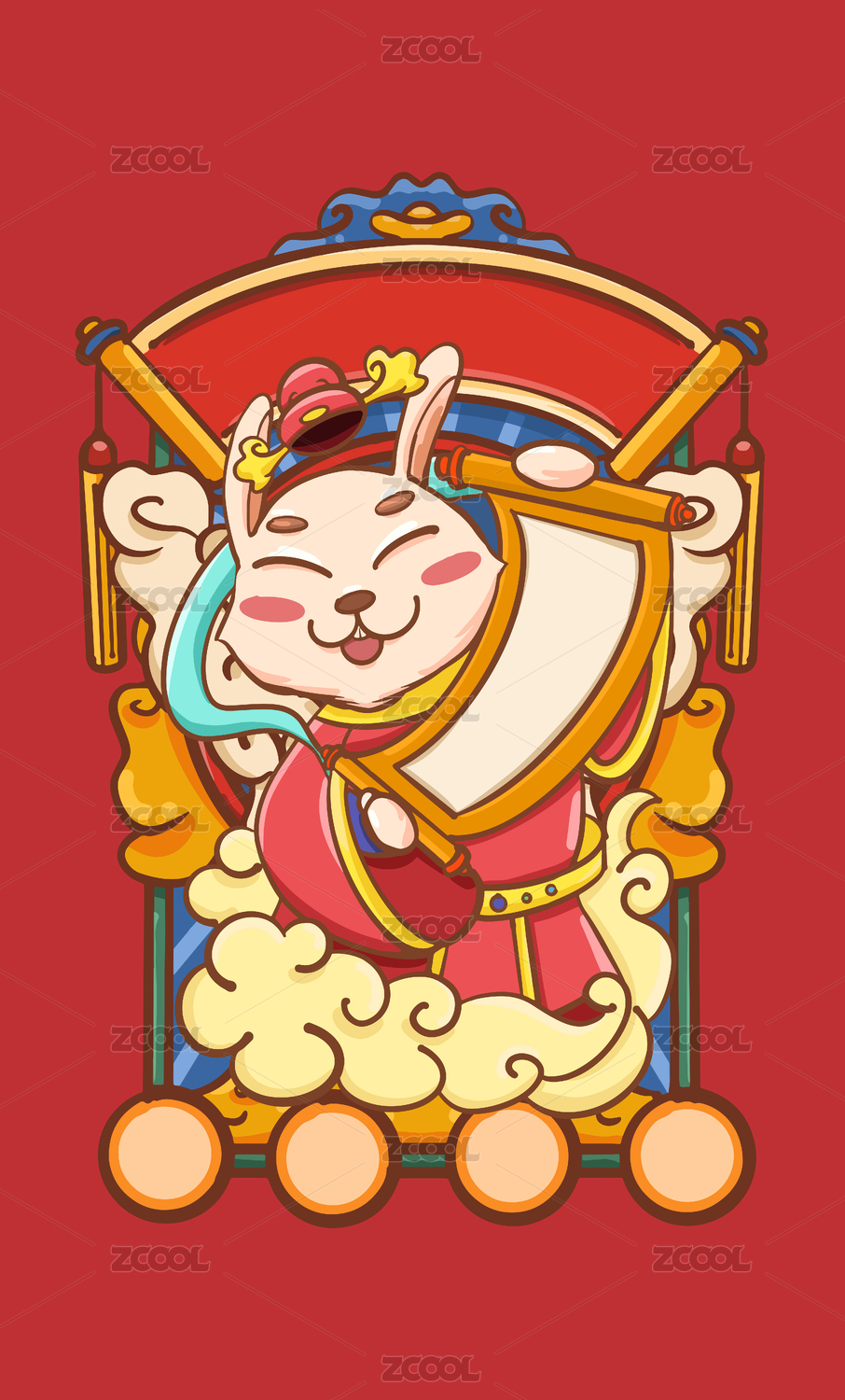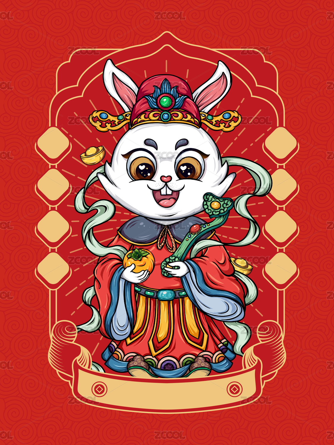 财神爷兔年国潮矢量插画