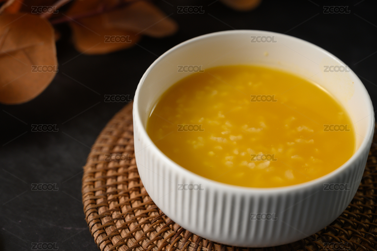 桌面上的碗里的美味可口的南瓜粥