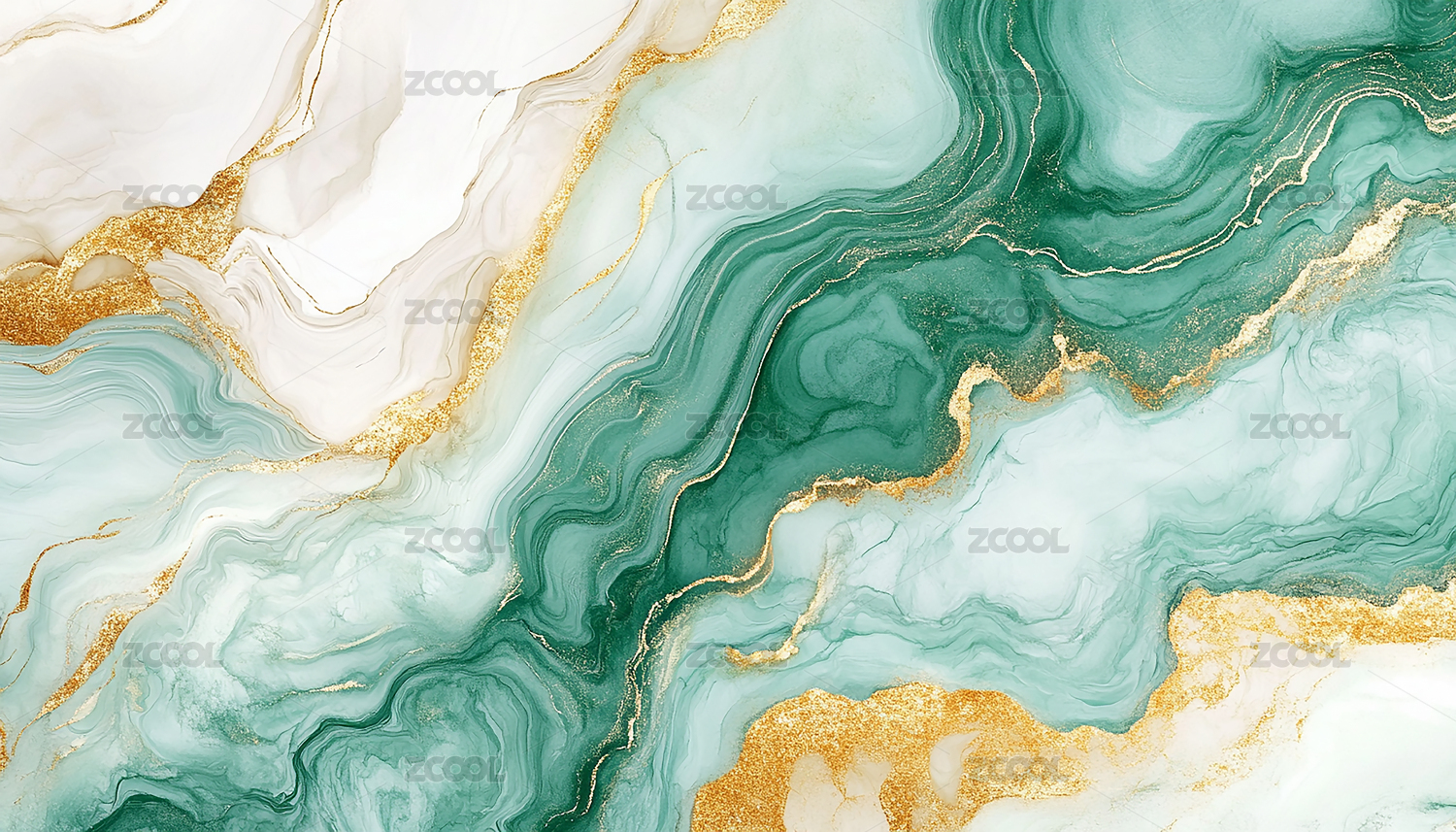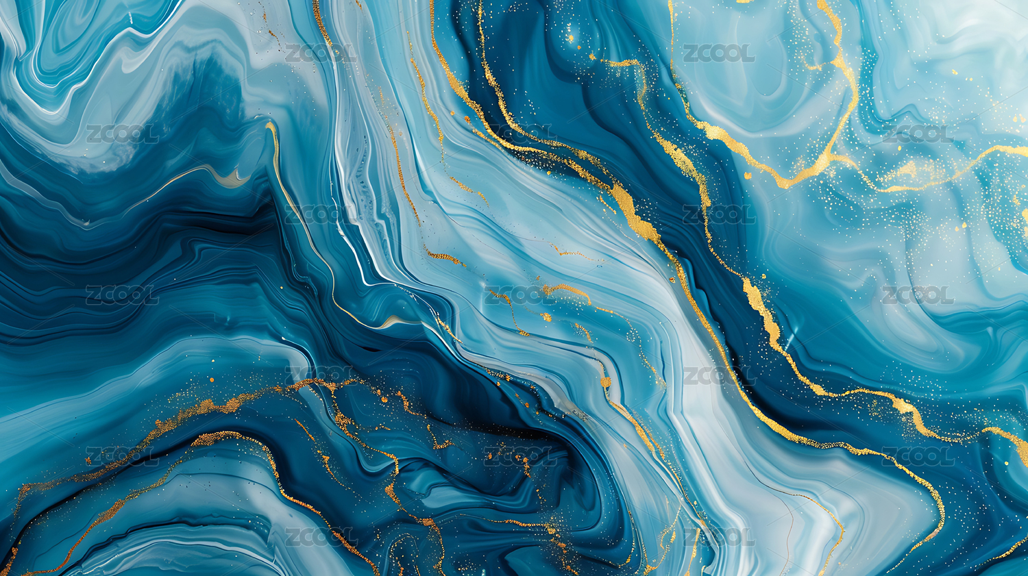 蓝绿色大理石纹背景金色点缀