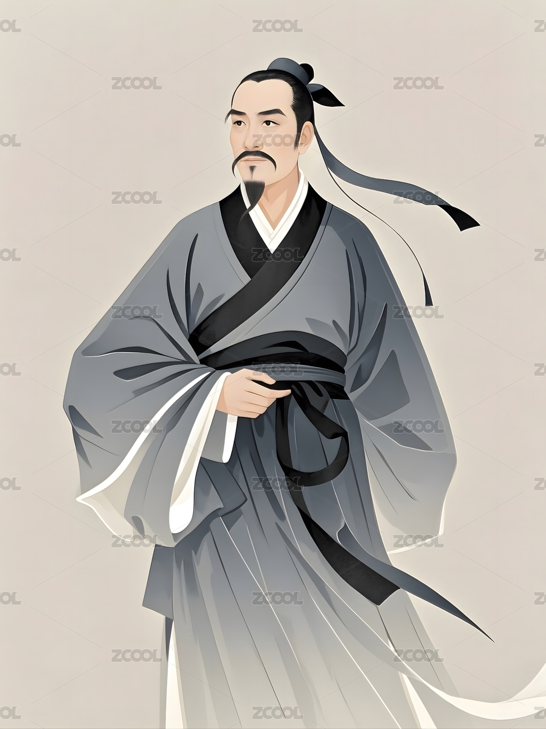 孟子,儒家,水墨风格,人物,肖像画,水墨画,中国画,人物画,写意画,古代人物