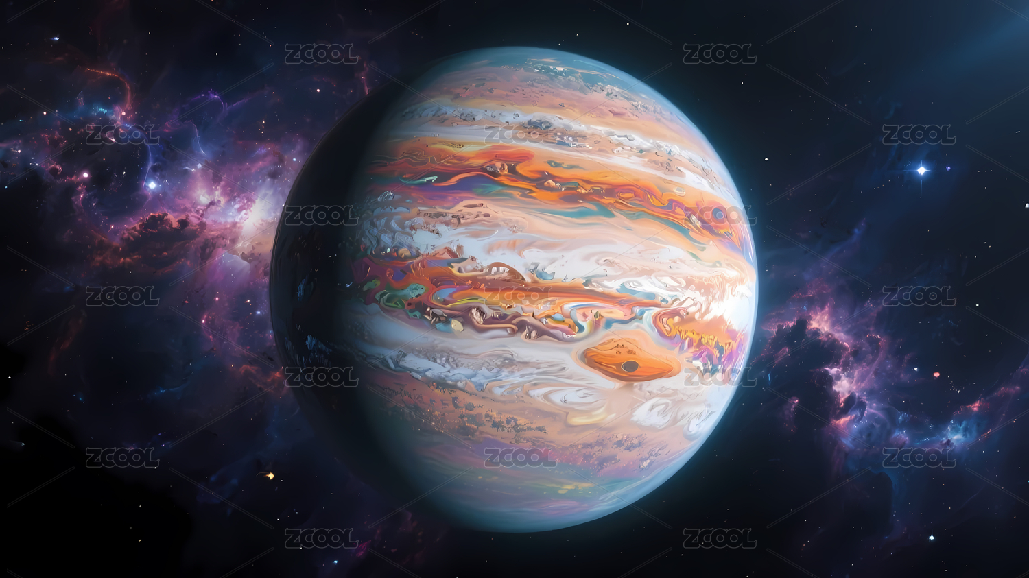 冰冷星球与星云背景