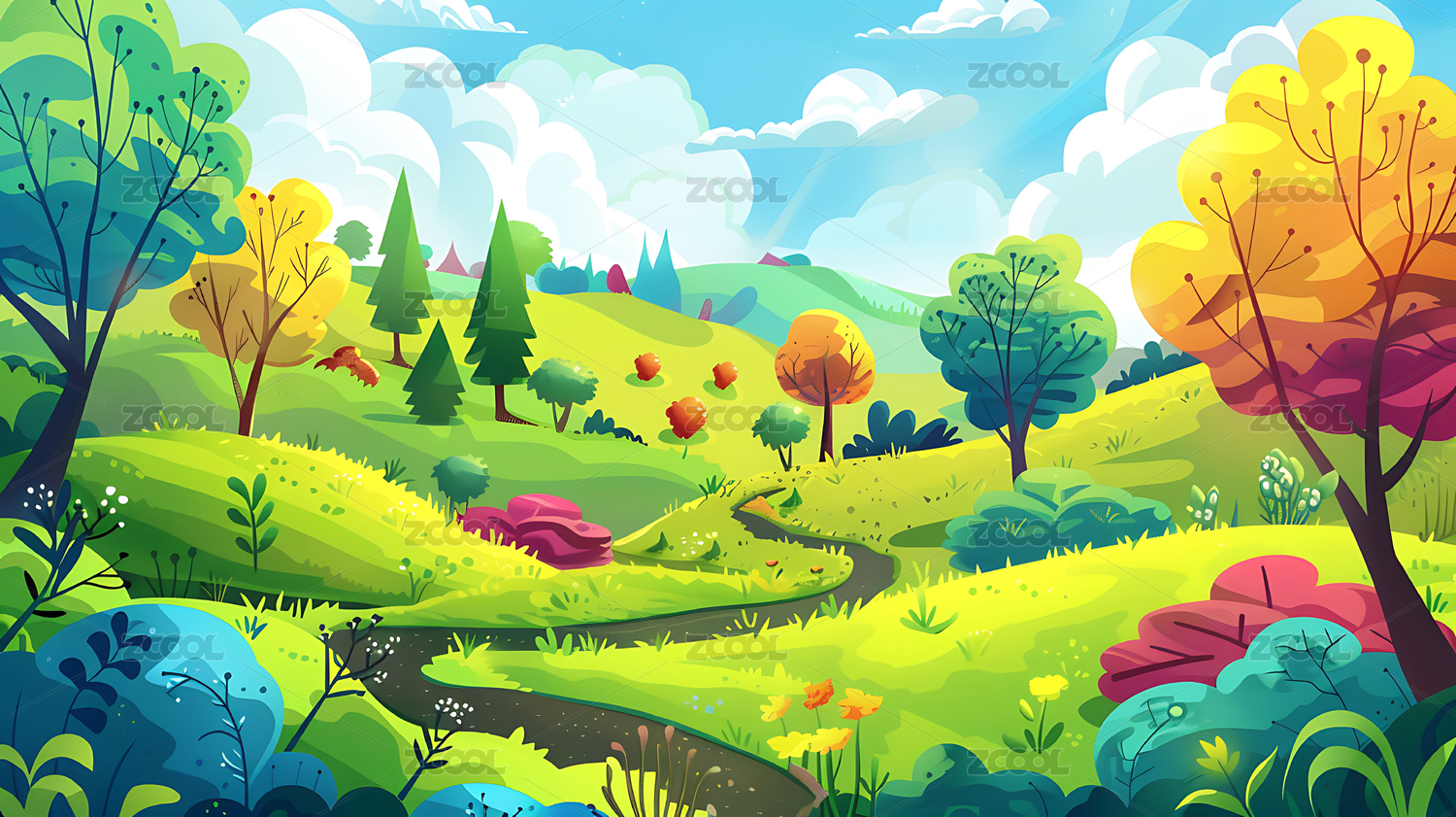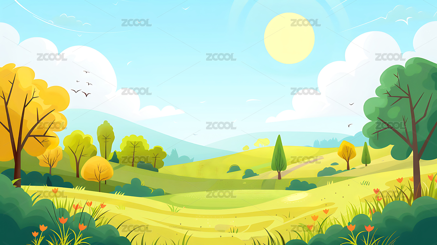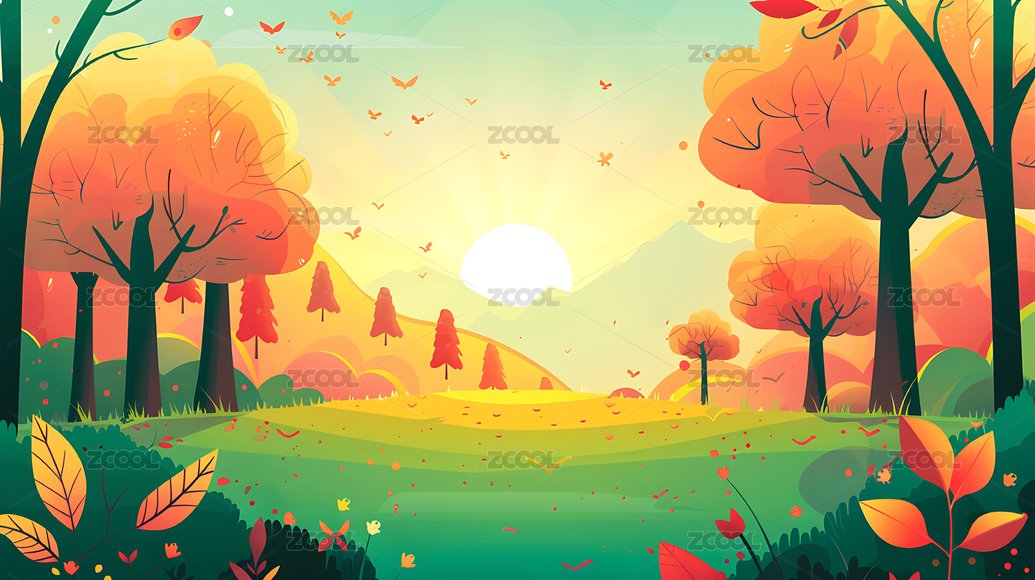 立秋节气户外旅行自然风景处暑卡通唯美插画